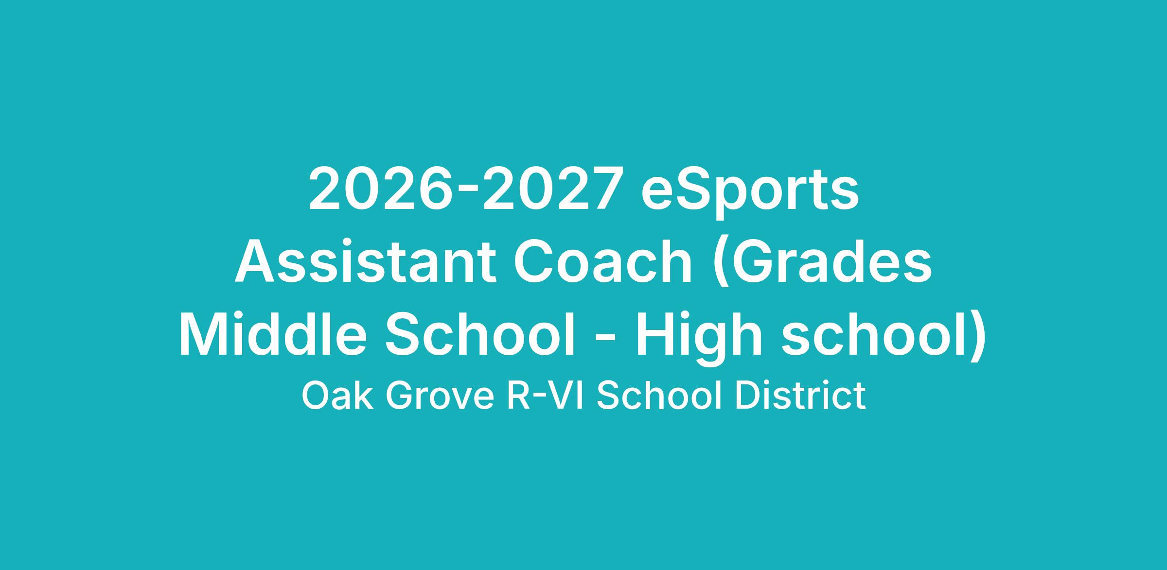 Job Title: eSports Assistant Coach (Middle School and High School Students)