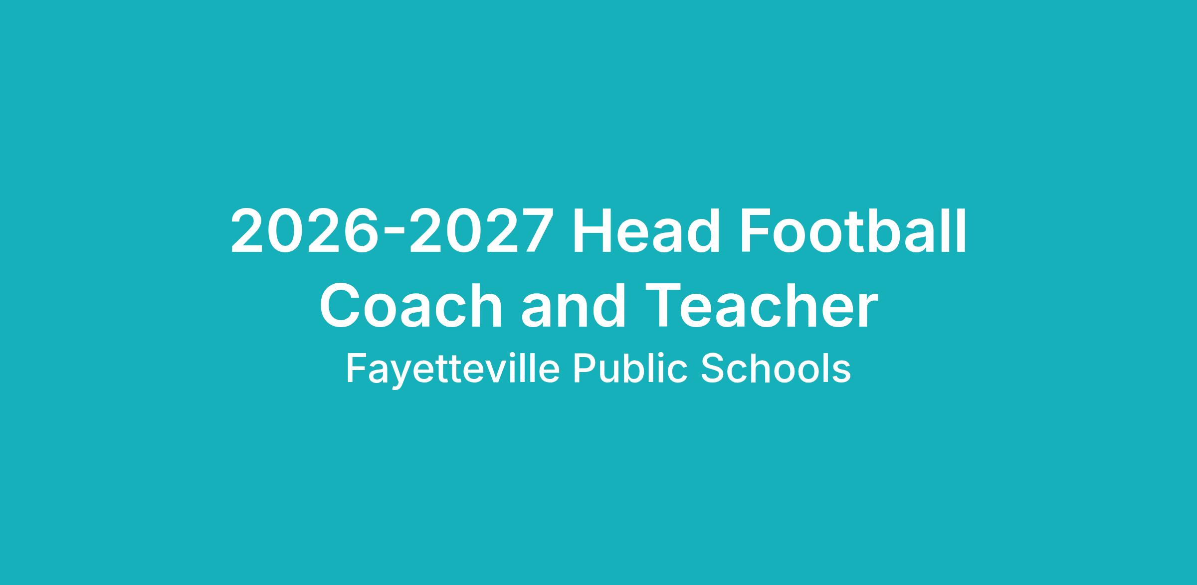 Fayetteville Public Schools is seeking a Head Football Coach to lead the Fayetteville High School football program. The successful candidate will demonstrate strong leadership, a commitment to student athlete development, and high professional standards while continuing the proud tradition of Fayetteville football.