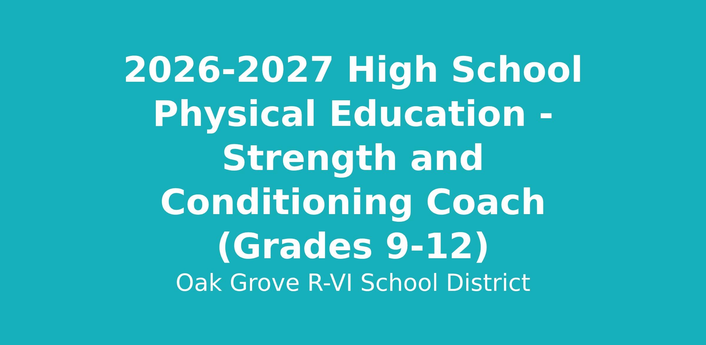 Job Title: 2026-2027 High School Physical Education/Weights/Strength Teacher (Grades 9-12)