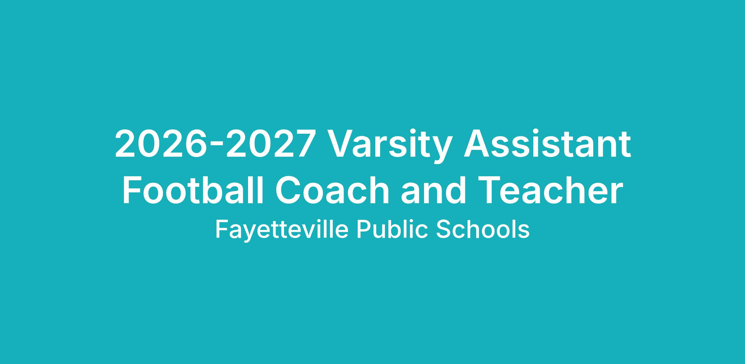Fayetteville Public Schools is seeking a Varsity Assistant Football Coach to support the Fayetteville High School football program.