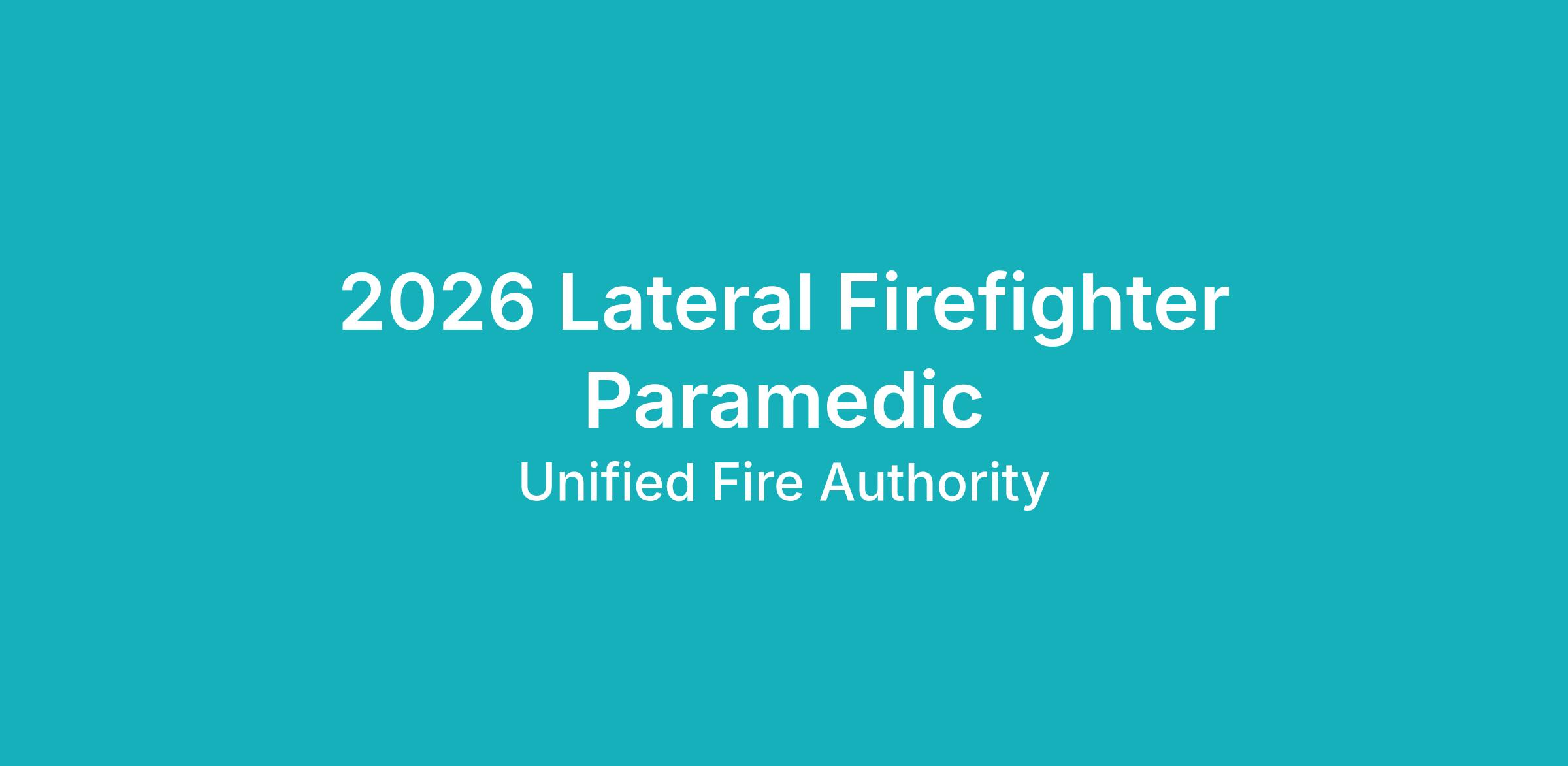 Unified Fire Authority is offering opportunities for Paramedics to join our organization through our lateral process. With compensation potentially starting up to step 10 based on UFA's firefighter pay plan.