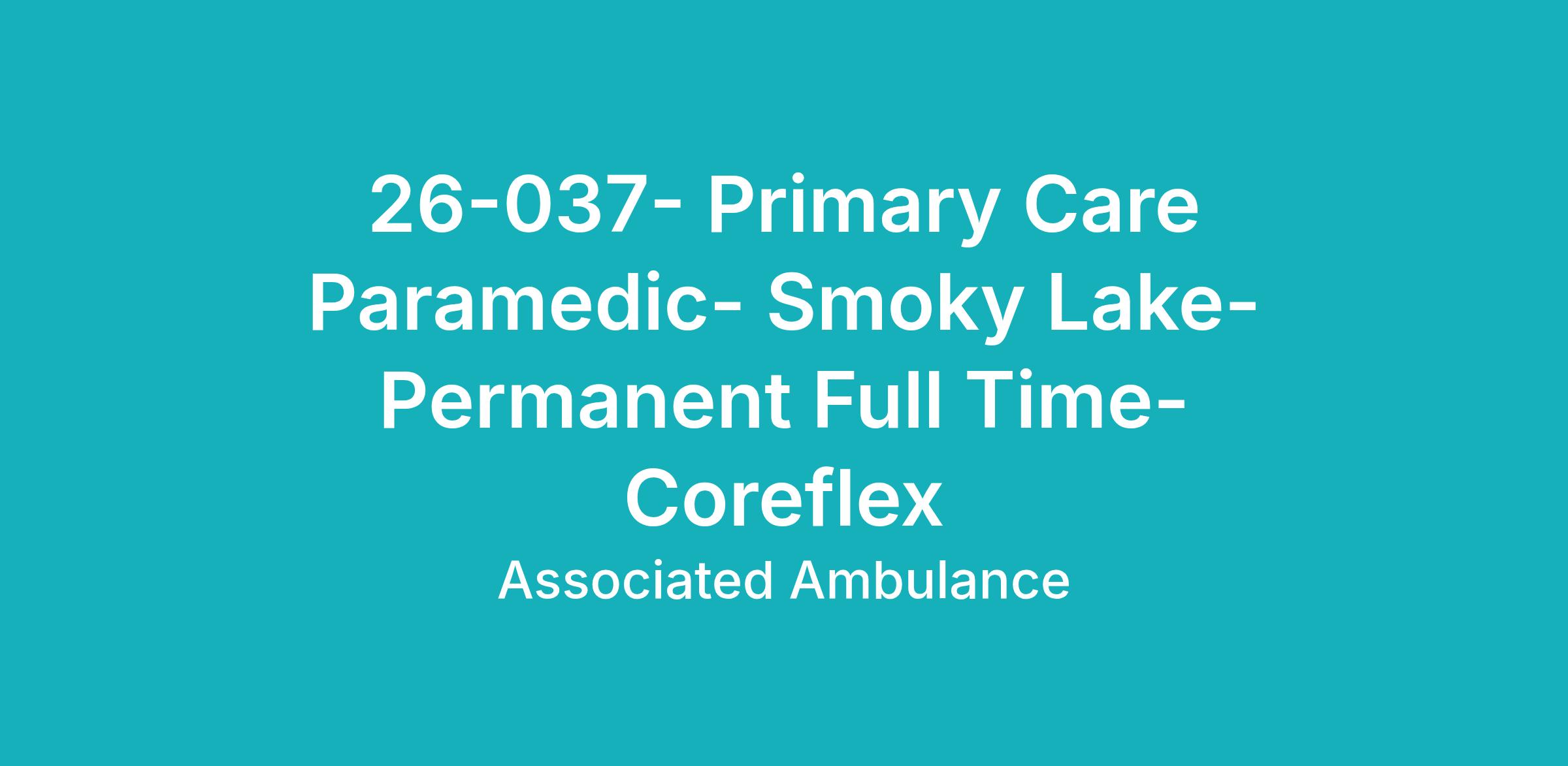 26-037 PRIMARY CARE PARAMEDIC - SMOKY LAKE - PERMANENT FULL TIME (Core/Flex)