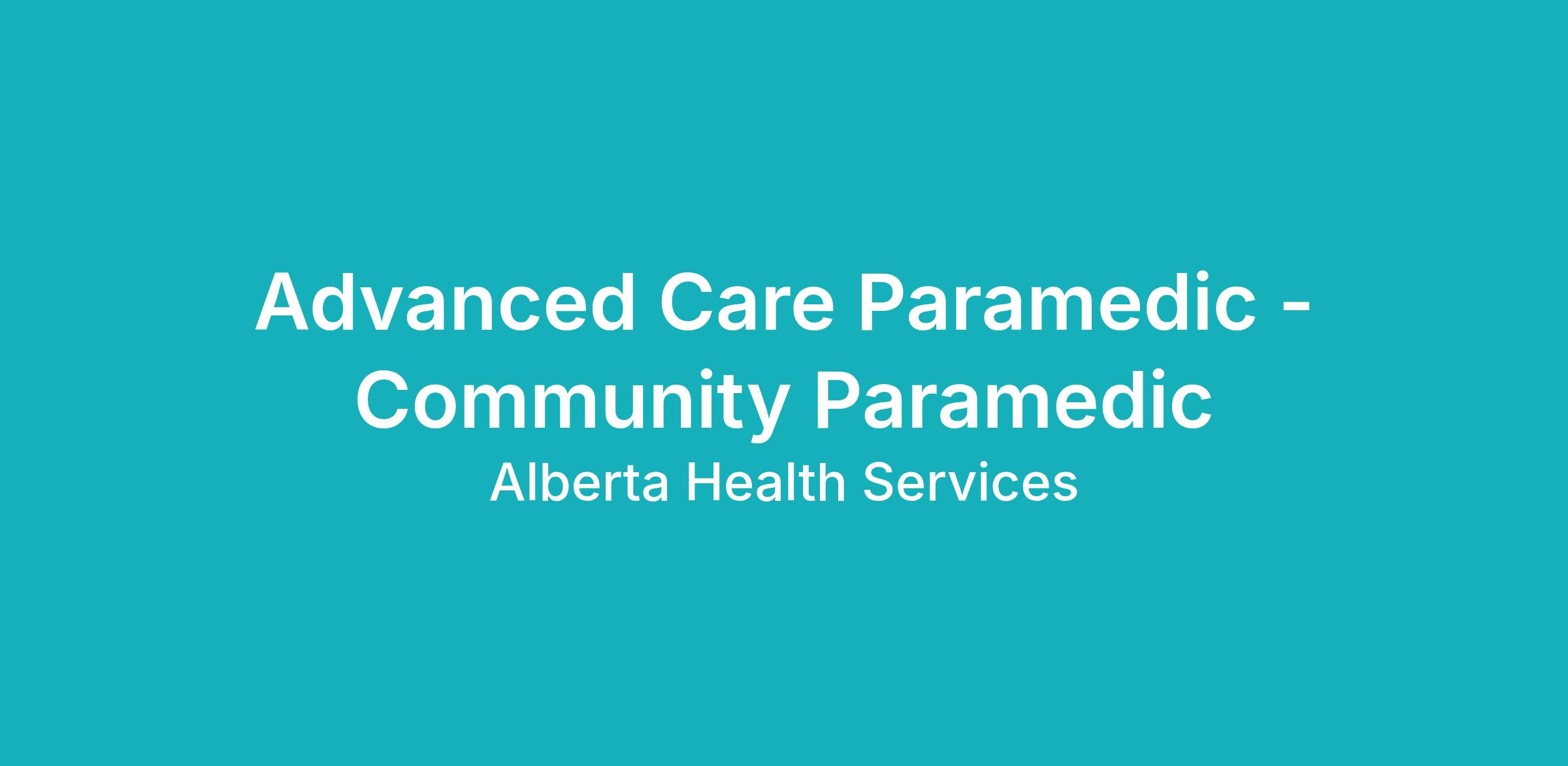 Emergency Health Services (EHS) Community Paramedics provide immediate or scheduled medical supervision and treatment(s) that are currently unavailable in the community setting in collaboration with the patient's existing healthcare services. The Community Paramedic (CP) works collaboratively with other community health care services to provide care in place for patients who do not require immediate transport to an acute care setting for medical treatment or assessment. The CP is a patient advocate who displays strong communication, time management, and clinical decision-making skills while interacting with a diverse, multidisciplinary workforce often situated within complex organizational structures. The CP ensures safe, proficient and appropriate patient care through EMS protocols, medical consultation, recognized best practices of care, and clinical referral requests. As a professional, the CP demonstrates ongoing working knowledge of EHS and Allied AHS partners: protocols, policies and procedures; local service and business unit standards; and governance documents. Additional education, training, and mentorship will be provided to ensure successful applicants are capable of providing appropriate care in place for patients in the community setting. While the primary role of the Community Paramedic focuses on the delivery of primary and urgent care, they must still be able to provide emergency treatment should the situation arise.