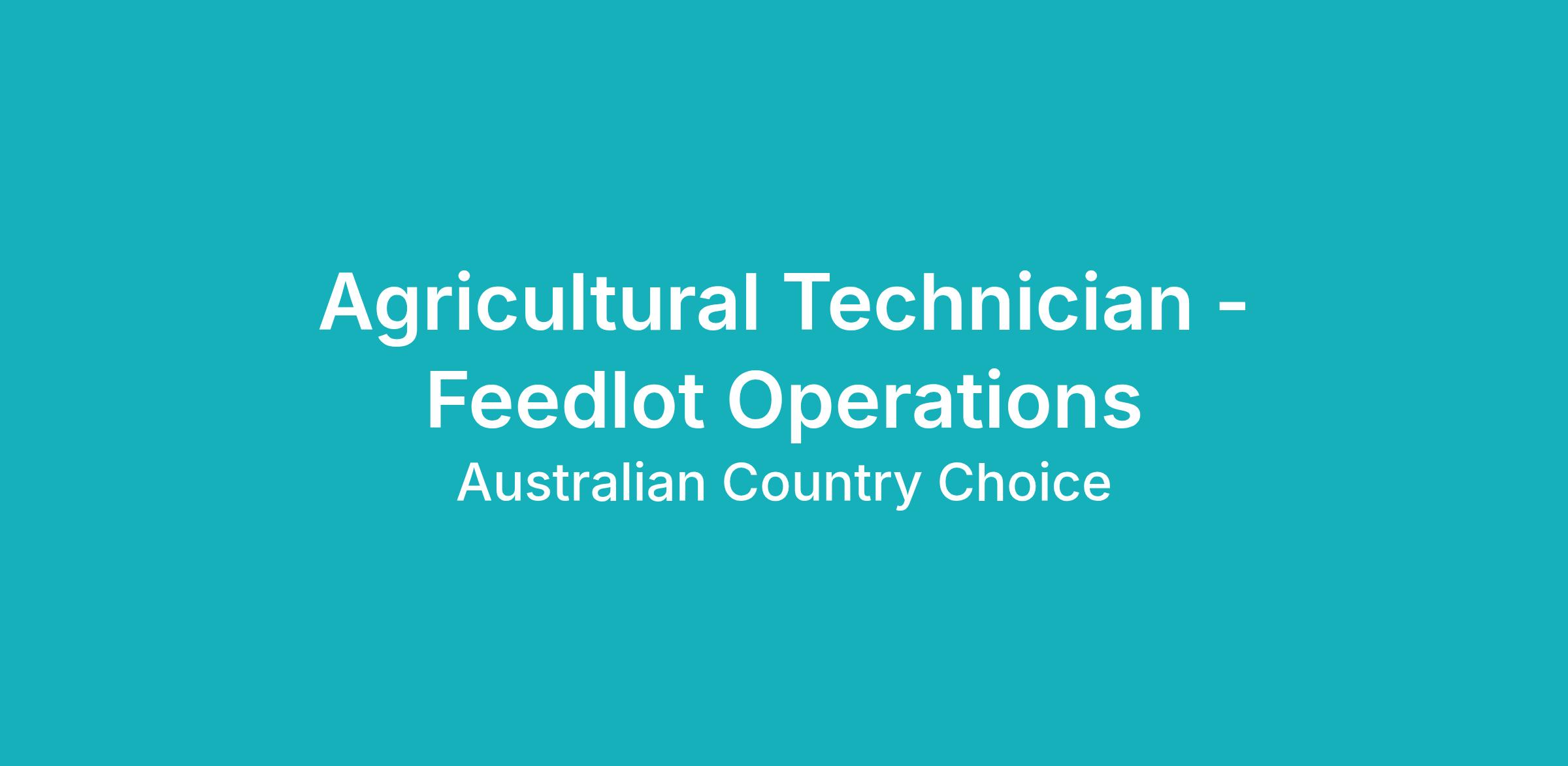 DescriptionBased at either Brindley Park or Opal Creek feedlot, the role of Agricultural Technician works within a team environment and enjoys loads of variety in being responsible for ensuring the health, nutrition and welfare of our animals at all times.