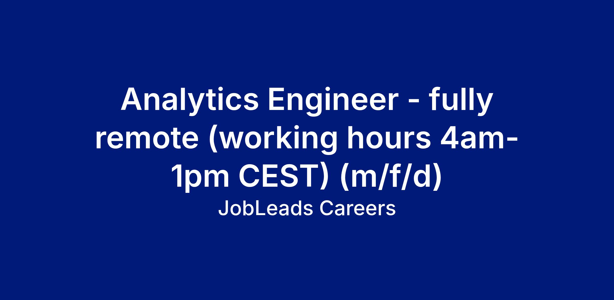 Analytics Engineer - fully remote (working hours 4am-1pm CEST) (m/f/d)