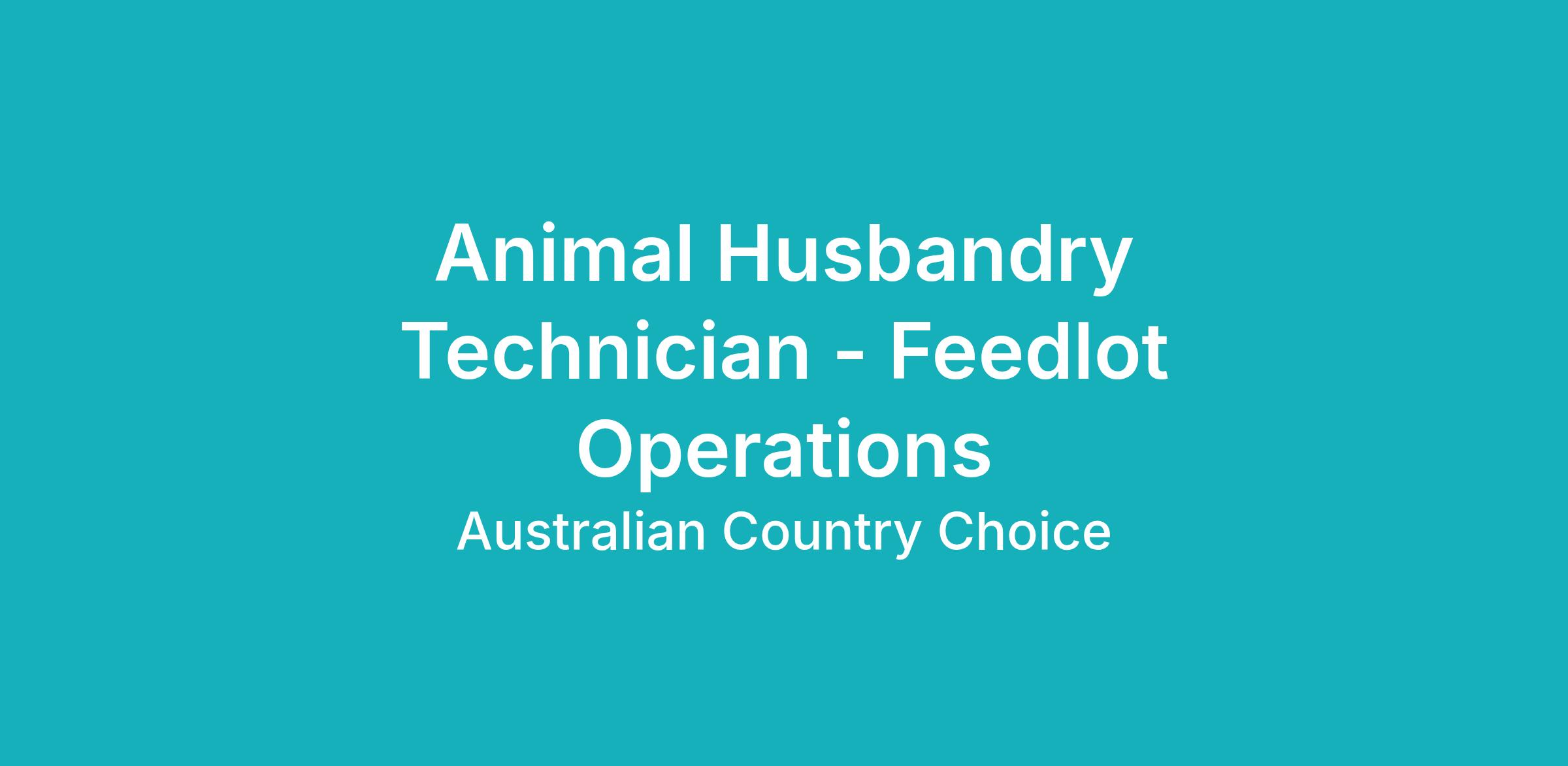 DescriptionBased at either Brindley Park or Opal Creek feedlot, the role of Animal Husbandry Technician assists with the care of livestock by undertaking technical animal husbandry tasks and providing nutrition assessment.