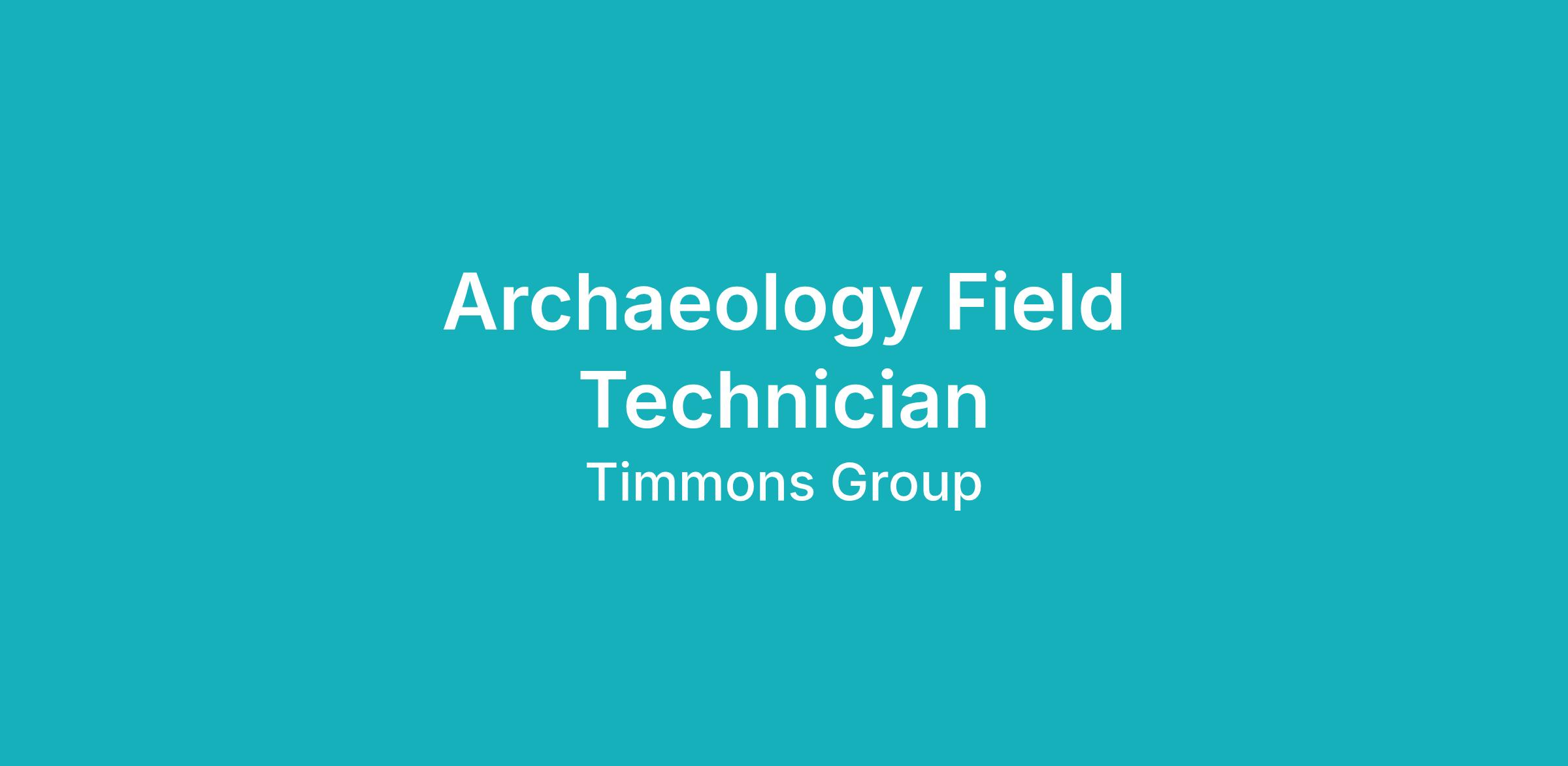 Timmons Group and Dutton + Associates, LLC (D+A) is seeking a full time Archaeology Field Technician for our Archaeology Group located in our Richmond, VA office location. Under the direction of the Archaeology Field Supervisors, the Archaeology Field Technicians will be responsible for implementing surveys methods and documenting findings in accordance with all applicable standards and guidelines.
