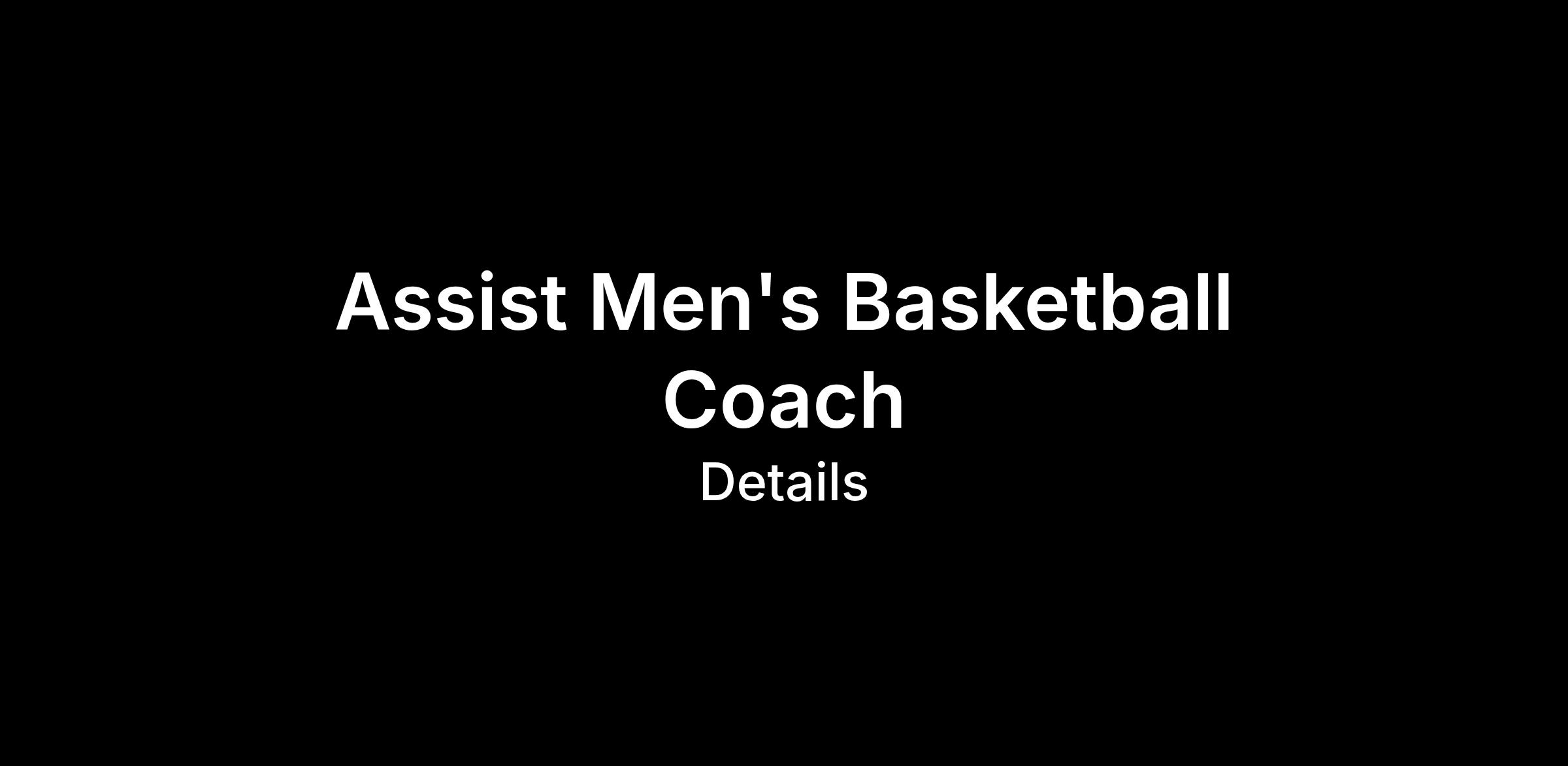 | Summary of Position: | Assist the Head Men’s Basketball Coach in all facets of the basketball program, including coordinating and directing specific areas of the program. |