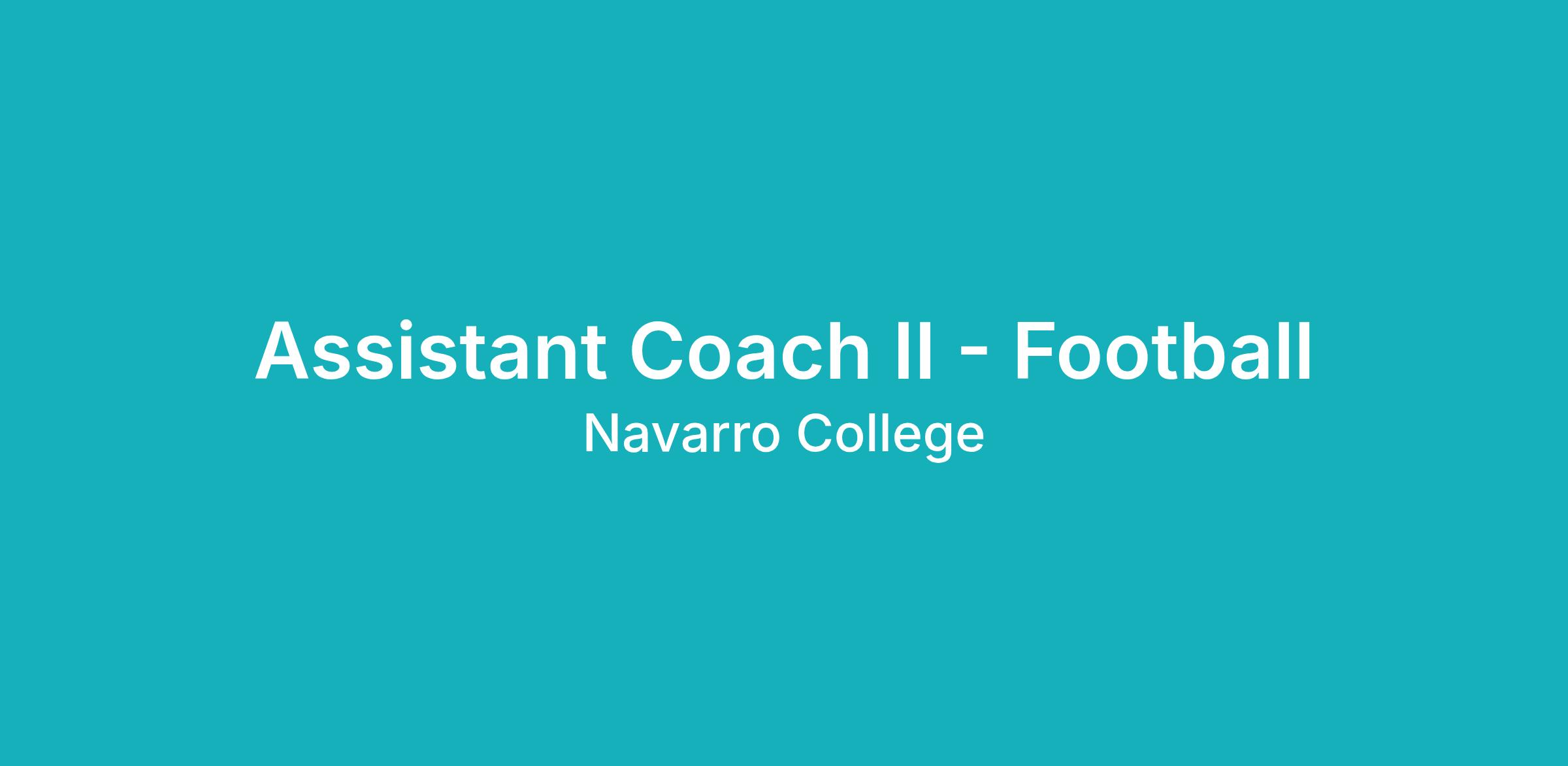 The Assistant Coach - Football works under the general supervision of the Head Coach - Football. The principal duties will be to serve as an Assistant Coach II - football.