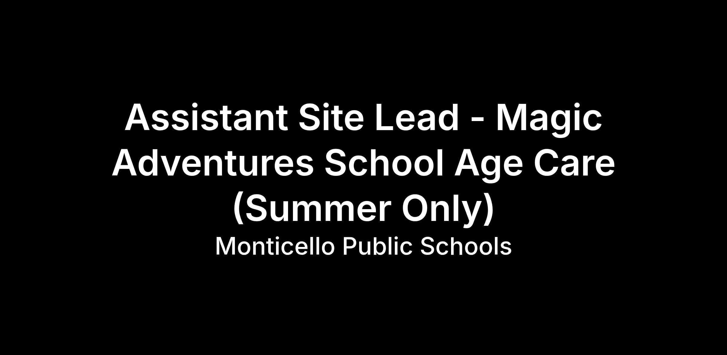 Magic Adventures is looking for a responsible and energetic adult that has a passion for working with children ages 3 - 6 years old in our school aged childcare program. Hours of operation are Monday-Friday 6 AM - 6 PM. Full time position - 40 hours/week during the summer program. Under the direction of the School Age Care Coordinator & the School Age Care Site Lead, the School Age Child Care Assistant Site Lead assists in the planning and supervision of daily structured activities for the school age children enrolled in program, supervises Education Support Specialists and Aides and oversees the daily operations of the program at the site.