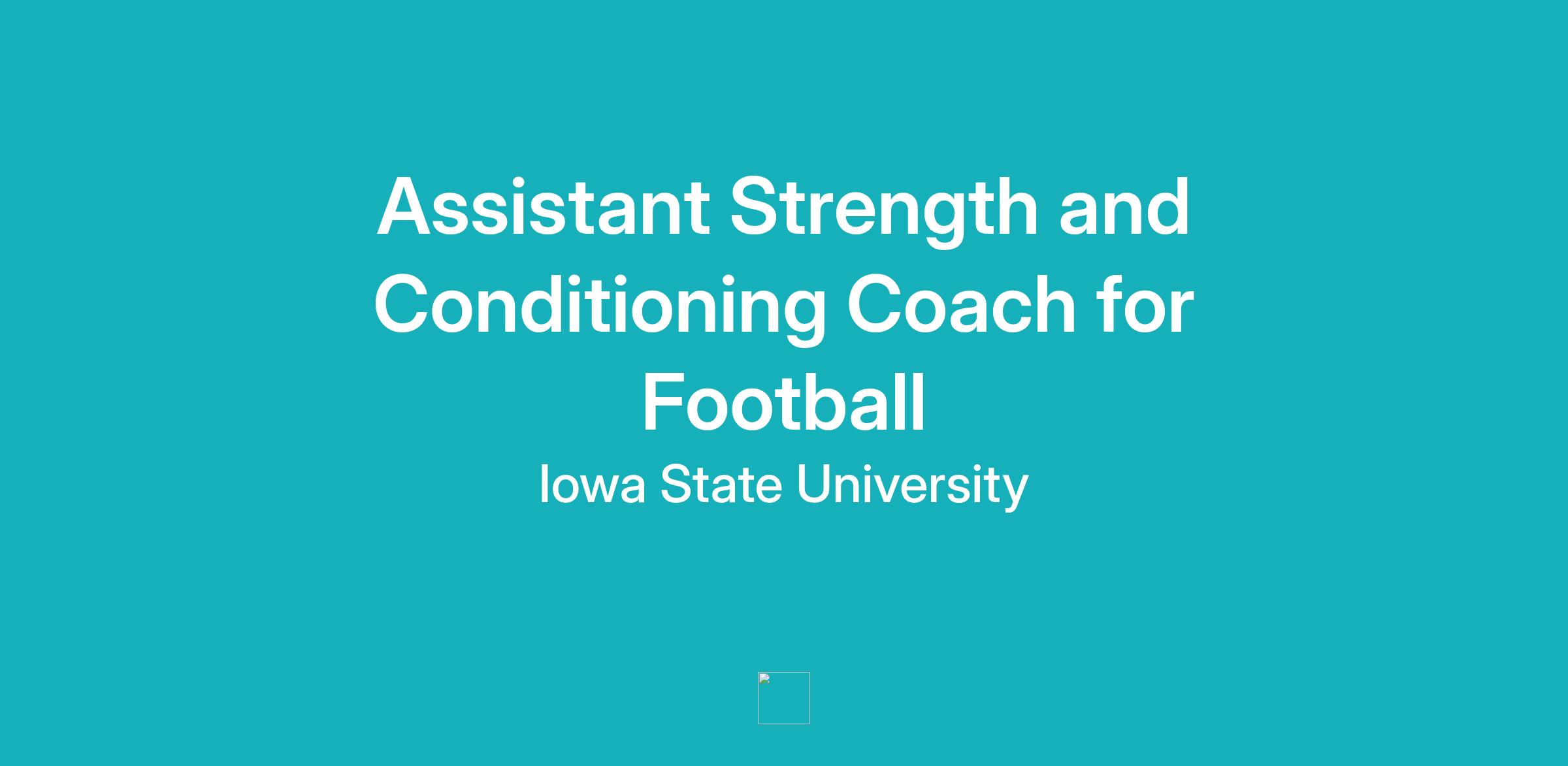 The Iowa State University football program is accepting applications for an Assistant Strength and Conditioning Coach. This position will assist in strength and conditioning of NCAA Division I football student-athletes and play a vital role in prevention of injuries, promotion of team culture, and increased athletic performance, competitiveness and program success.