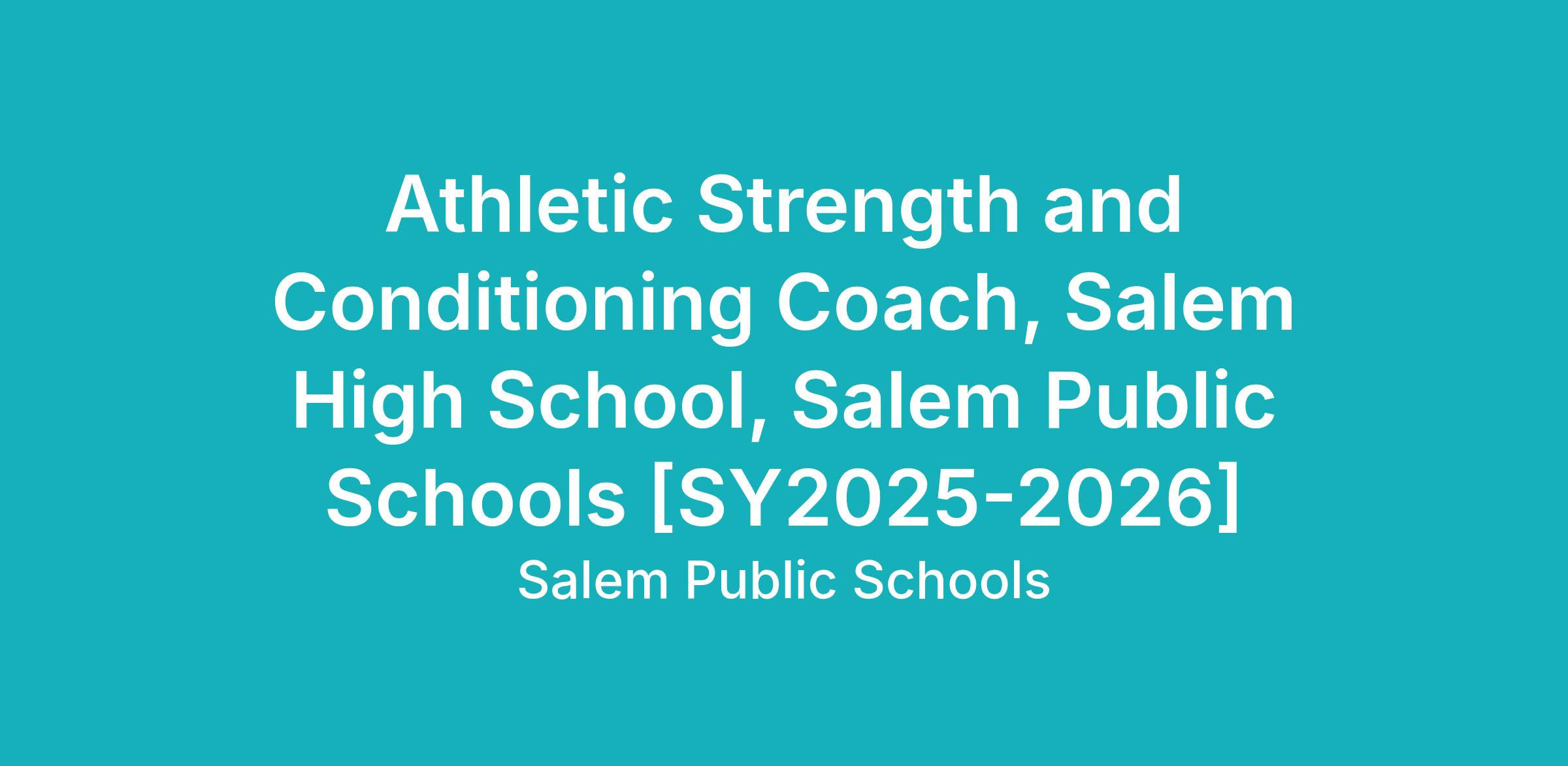 Athletic Strength and Conditioning Coach (Spring), Salem High School, Salem Public Schools [SY2025-2026]