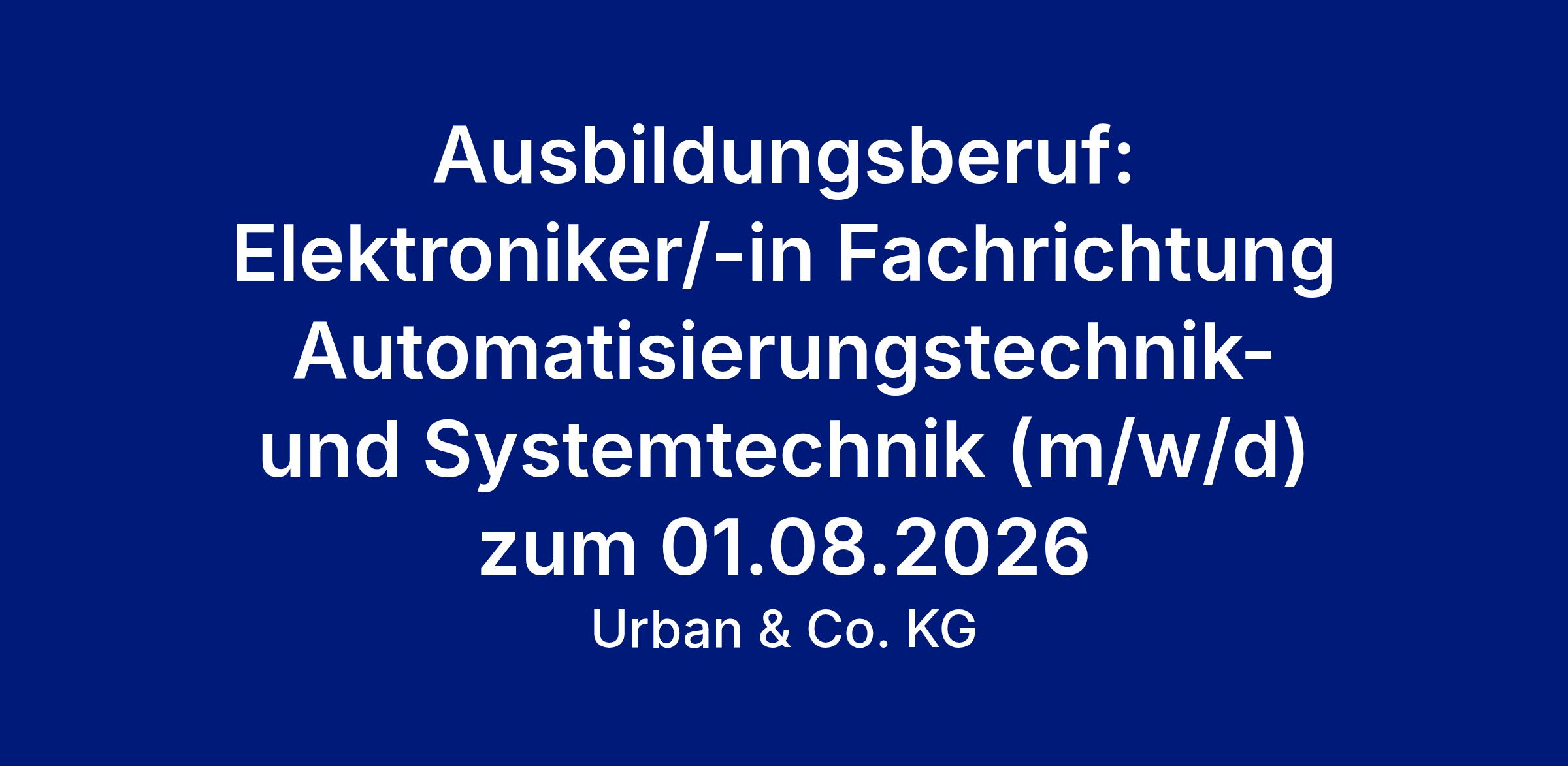 Ausbildungsberuf: Elektroniker/-in Fachrichtung Automatisierungstechnik- und Systemtechnik (m/w/d) zum 01.08.2026