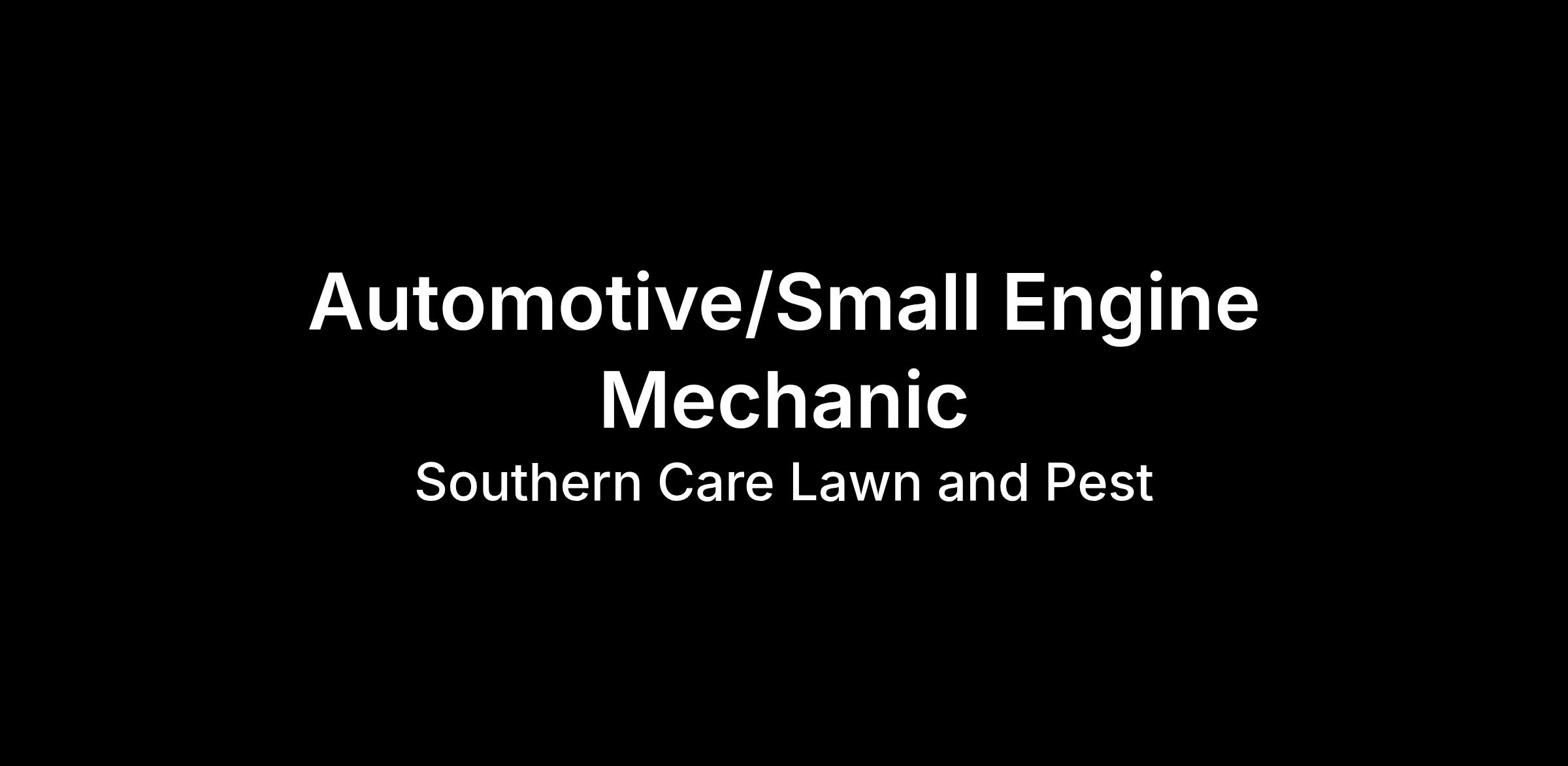 Southern Care Lawn is hiring a Automotive/Small Engine Repair Mechanic to join our team! This position focuses on diagnosing, repairing, and maintaining our fleet of vehicles. As an Automotive/Small Engine Repair Mechanic, you will troubleshoot hydraulic, electrical, and engine systems, ensuring all equipment operates safely and efficiently.
