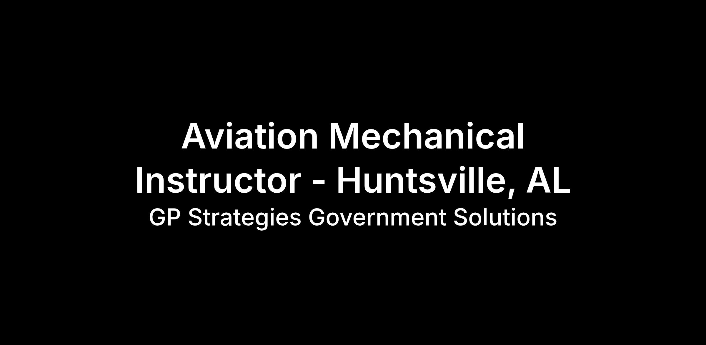 GP Strategies Government Solutions has an opening for an Aircraft Mechanical Instructor to work onsite with our client in Huntsville, AL. This is a full-time, regular, exempt, benefitted position.