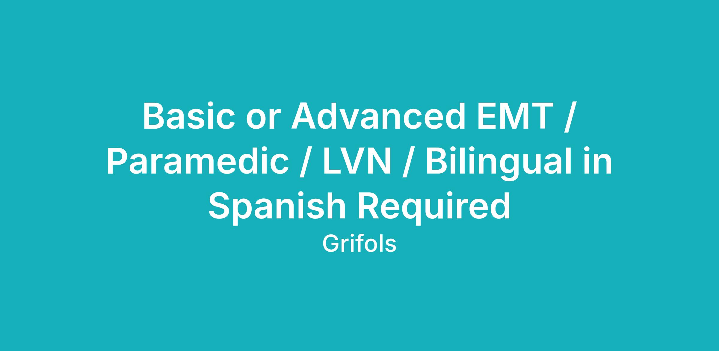 Educated and currently certified/licensed in the state of employment and according to state requirements as an EMT, Paramedic or LVN Current CPR certification required.