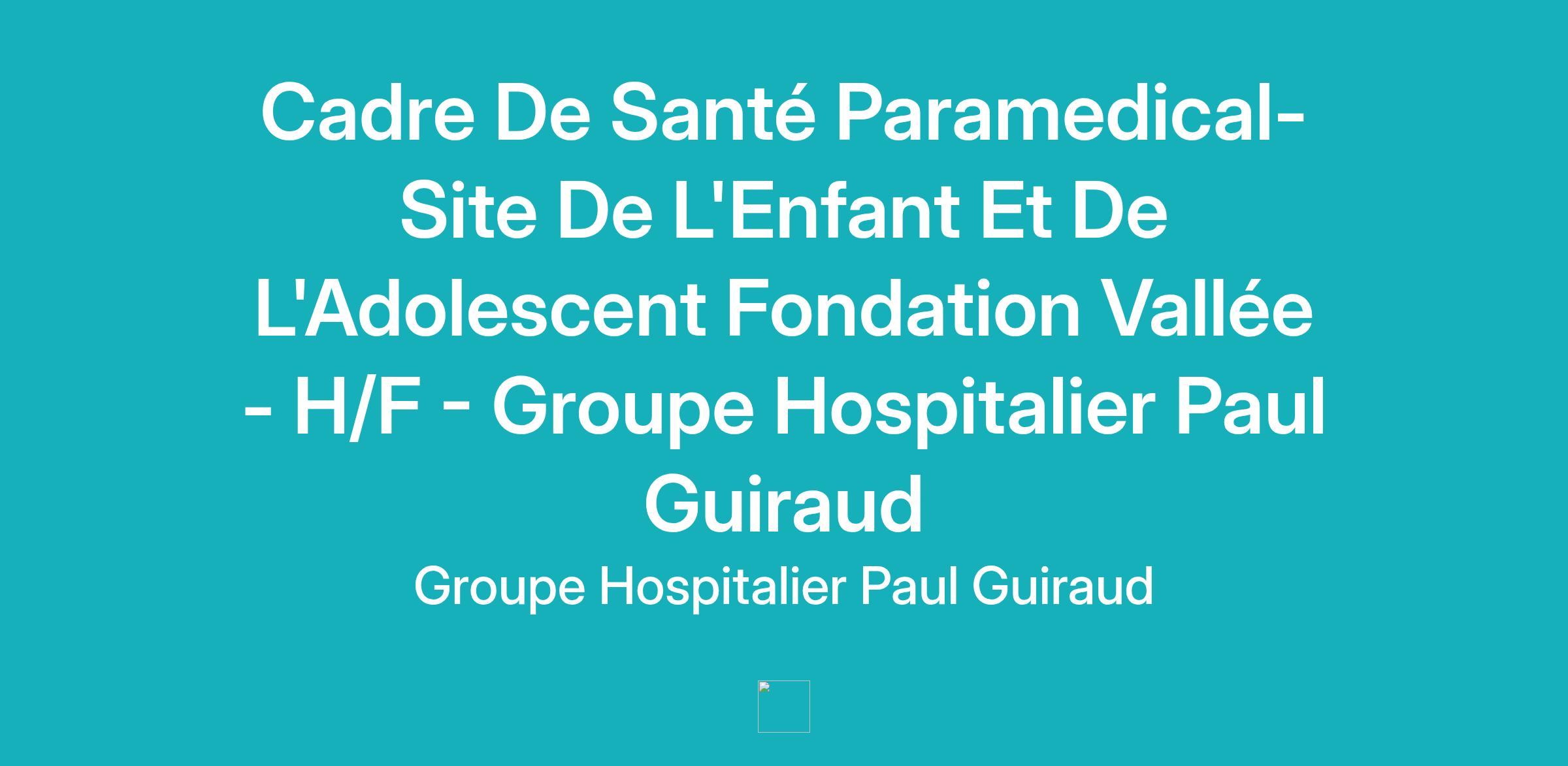 Métier / Fonction : Cadre de santé paramédical site de l’enfant et de l’adolescent – CH Fondation Vallée