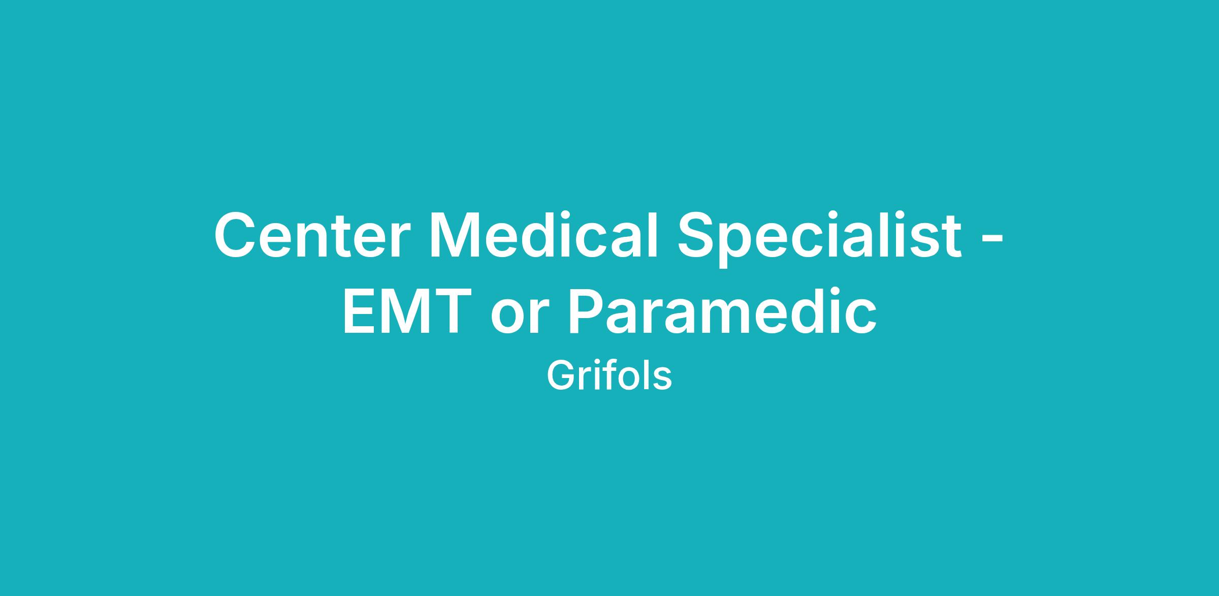Are you looking for something different? Did you know that your skill set/experience makes you a valuable candidate for a Center Medical Specialist position in one of our plasma donation centers? Grifols prides itself on its family-like culture. Our company has more than tripled its workforce in the last 10 years — we’re growing, and you can grow with us! For more information visit: www.grifolsplasma.com