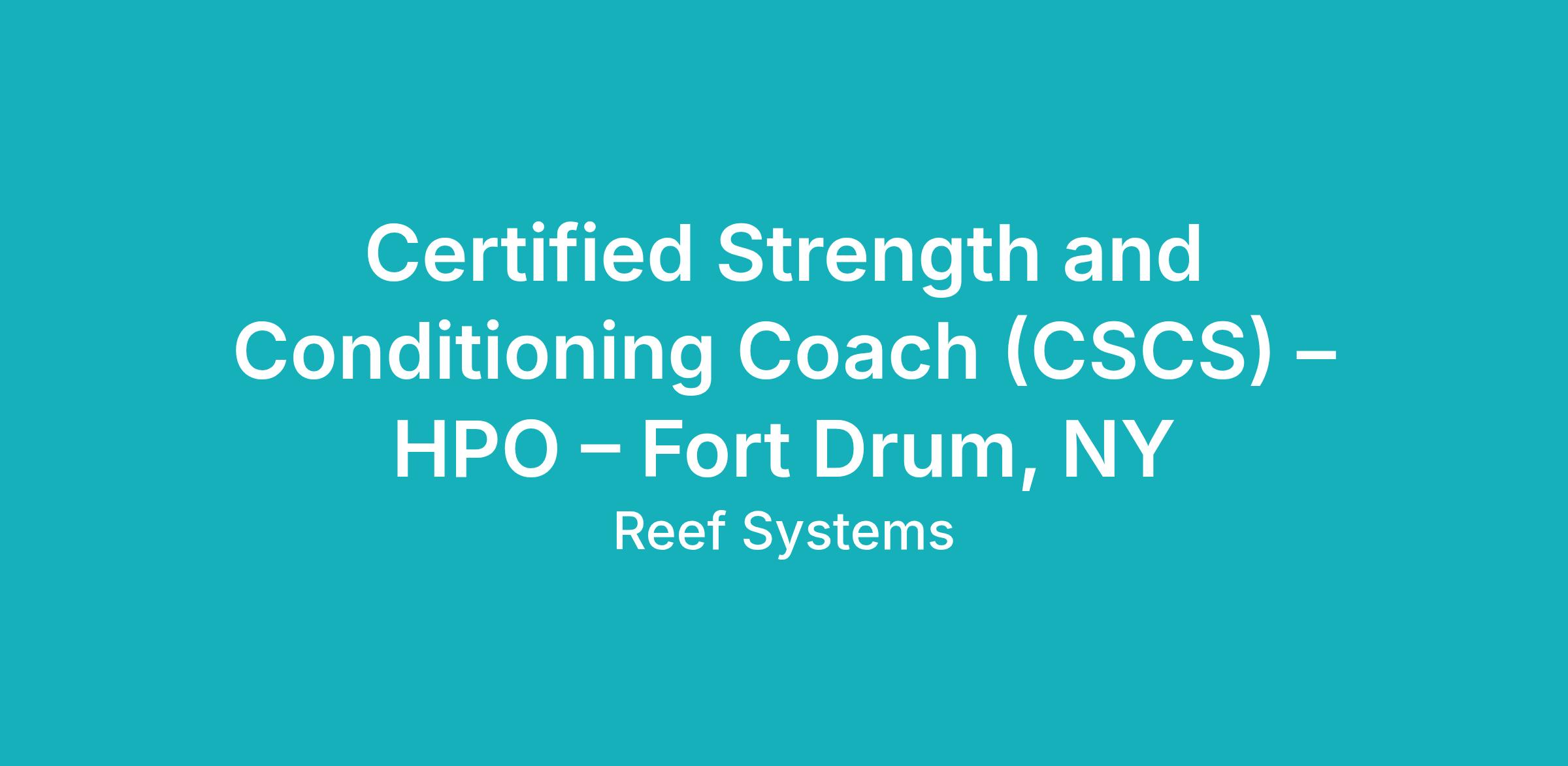 Certified Strength and Conditioning Coach (CSCS) – HPO – Fort Drum, NY