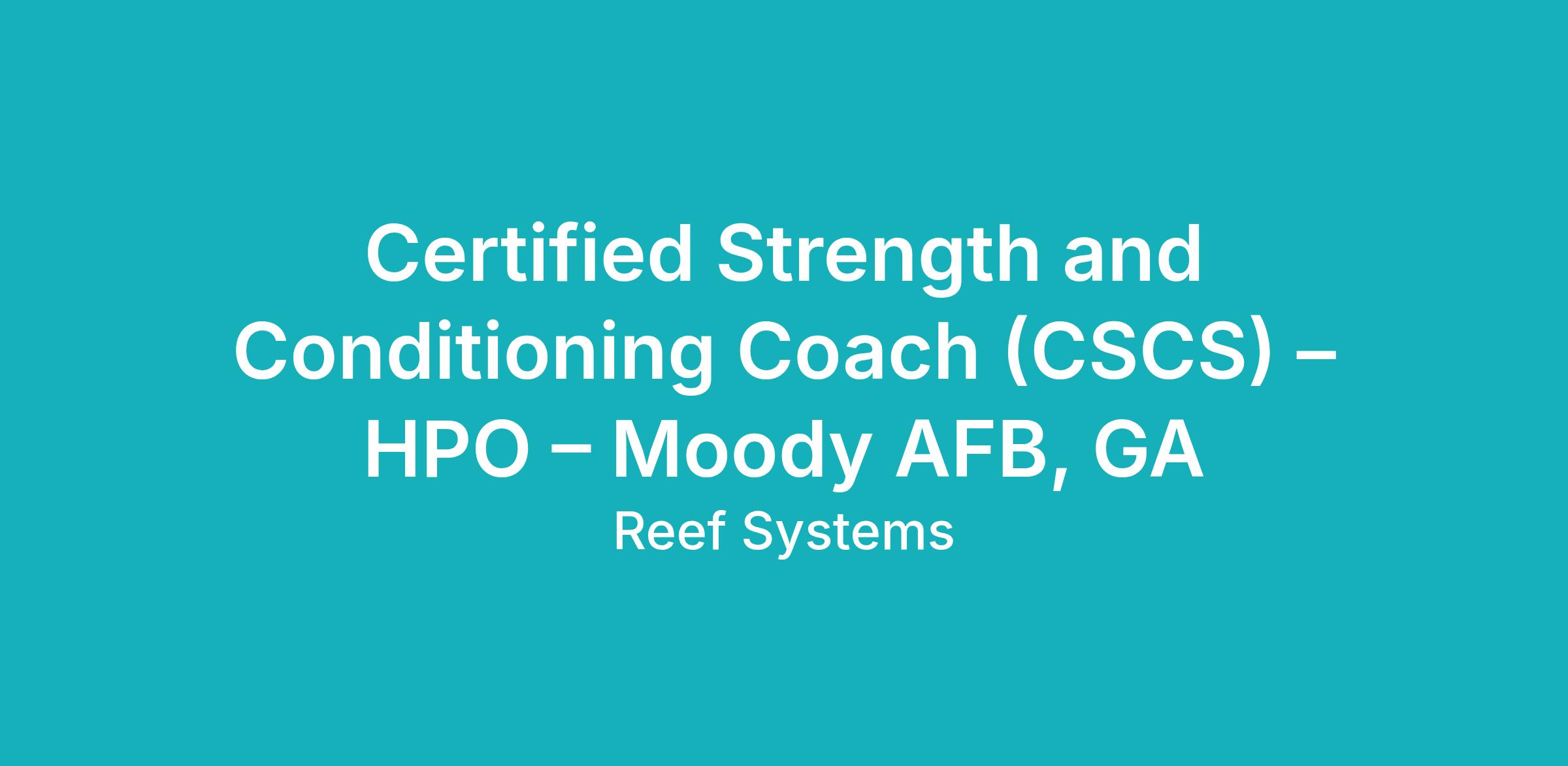 Certified Strength and Conditioning Coach (CSCS) – HPO – Moody AFB, GA