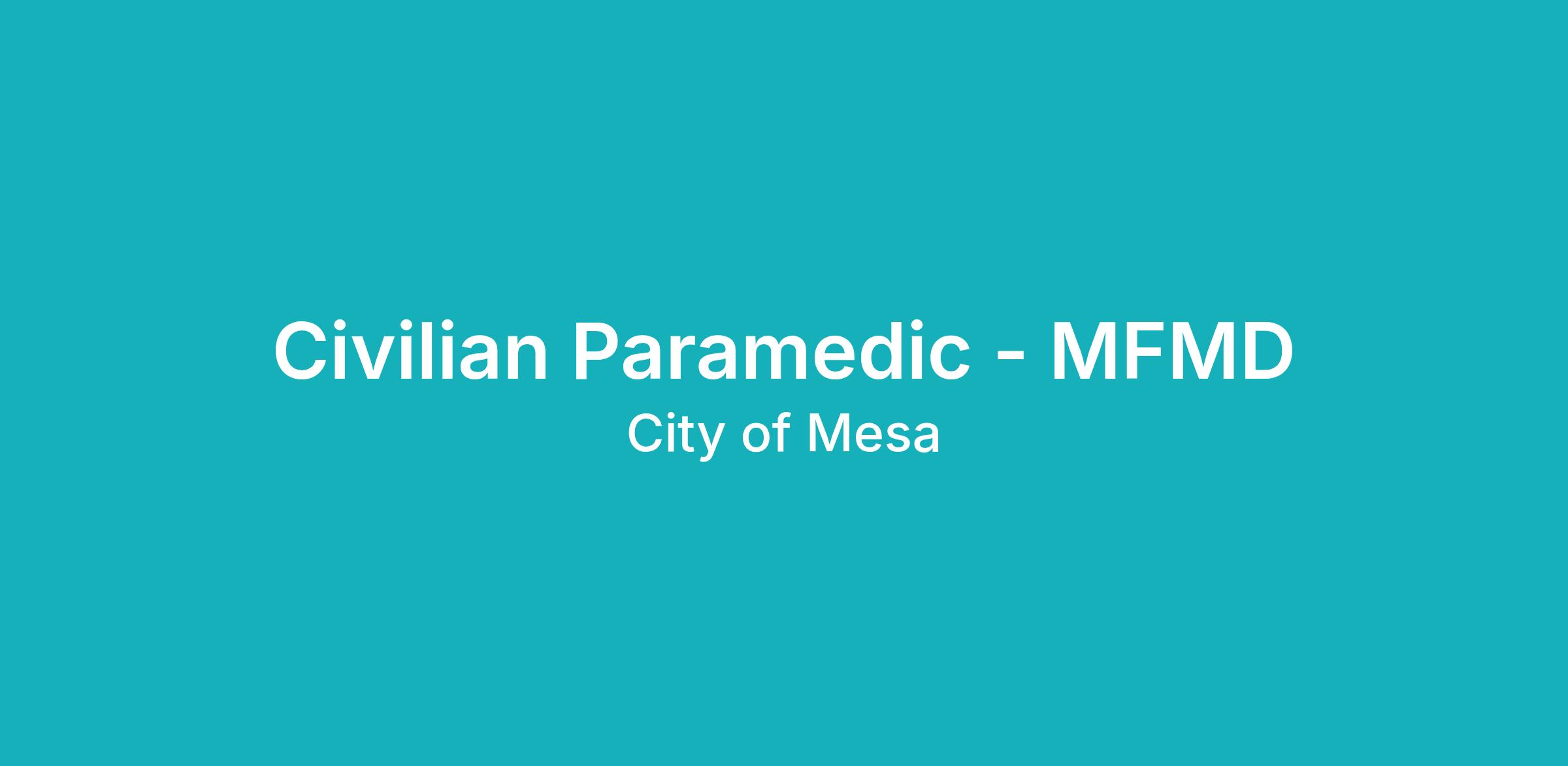 This civilian class participates in the Arizona State Retirement System (ASRS). Civilian Paramedics are assigned to the Emergency Transportation Division responding to EMS calls and are not engaged in fire suppression work. Civilian Paramedics report to an Emergency Transportation Administrator. Civilian Paramedics and EMTs also take medical direction from a senior Paramedic on-scene (which may be a Fire Captain, Fire Engineer, or Firefighter), the Department’s contracted Medical Director, and/or the hospital receiving the patients and then continuing their treatment. A comprehensive 8-week Emergency Transport Services (ETS) Integration Program is provided to all new hires. Employees are assigned to work 10-hour shifts and 40-hour workweeks during the ETS Integration Program. Each new hire must pass a skill evaluation and the MFMD Emergency Vehicle Driver\Operator Training in order to successfully complete the ETS Integration Program. Upon successful completion, Civilian Paramedics may work on a 12-hour or 24-hour shift schedule, which may include evenings, weekends, and holidays, and may require working overtime. Civilian Paramedics assigned to the EMS Division work on a 40-hour schedule, which may also include evenings, weekends, and holidays, and may also require working overtime. This class is FLSA nonexempt.