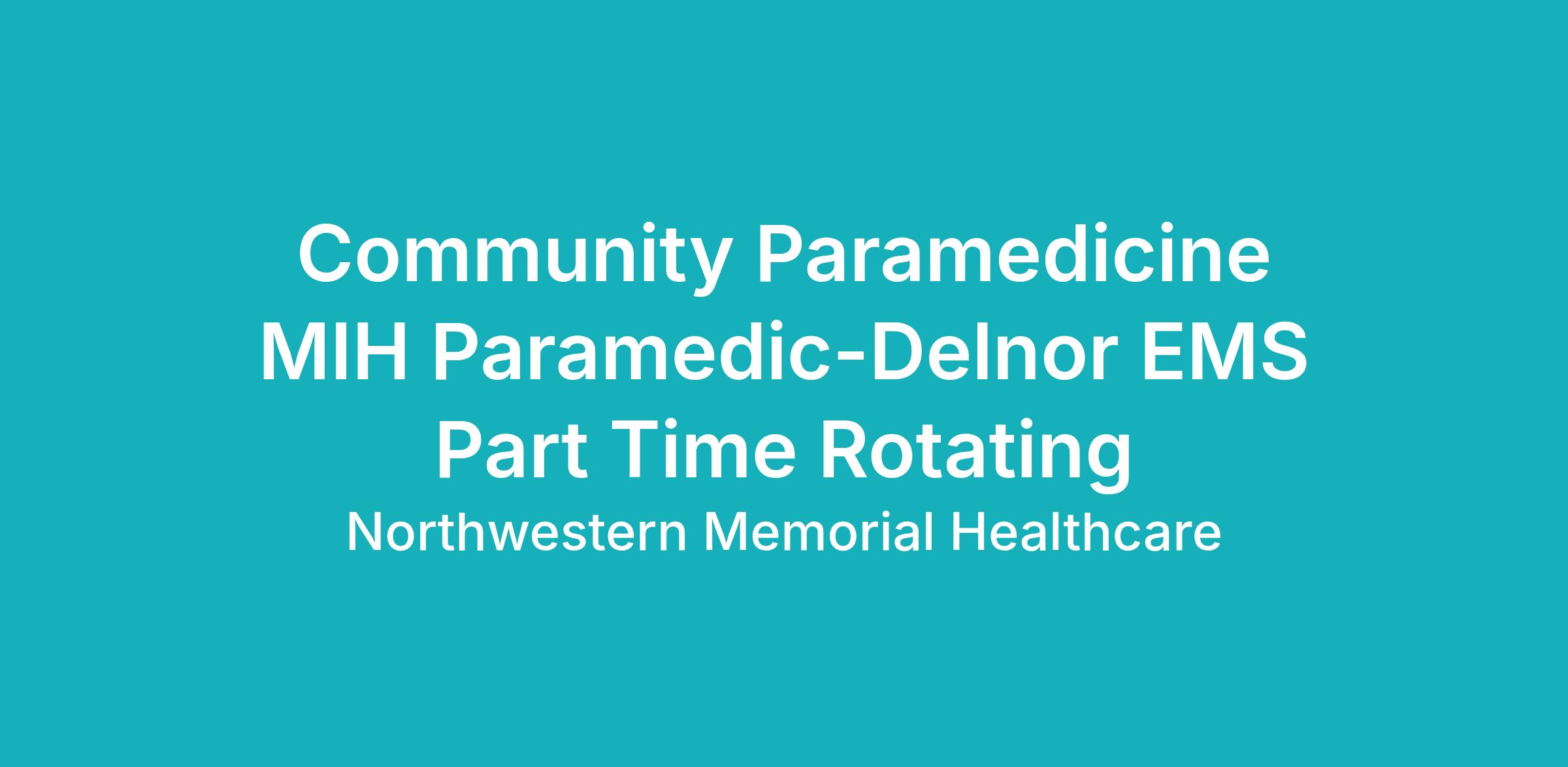 This position is based at Delnor Hospital with the Southern Fox Valley EMS. The schedule for this position is 20 hours per week, Monday - Friday between the hours of 8a - 5p, hours will be flexible based on program patient referrals.