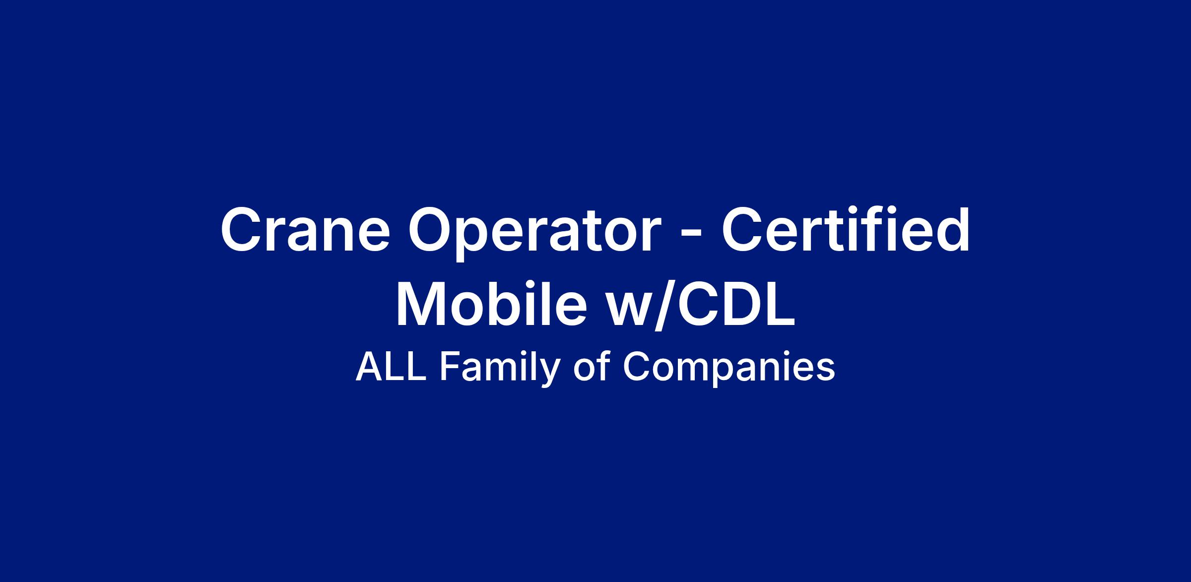 Crane Operator - Certified Mobile w/CDL