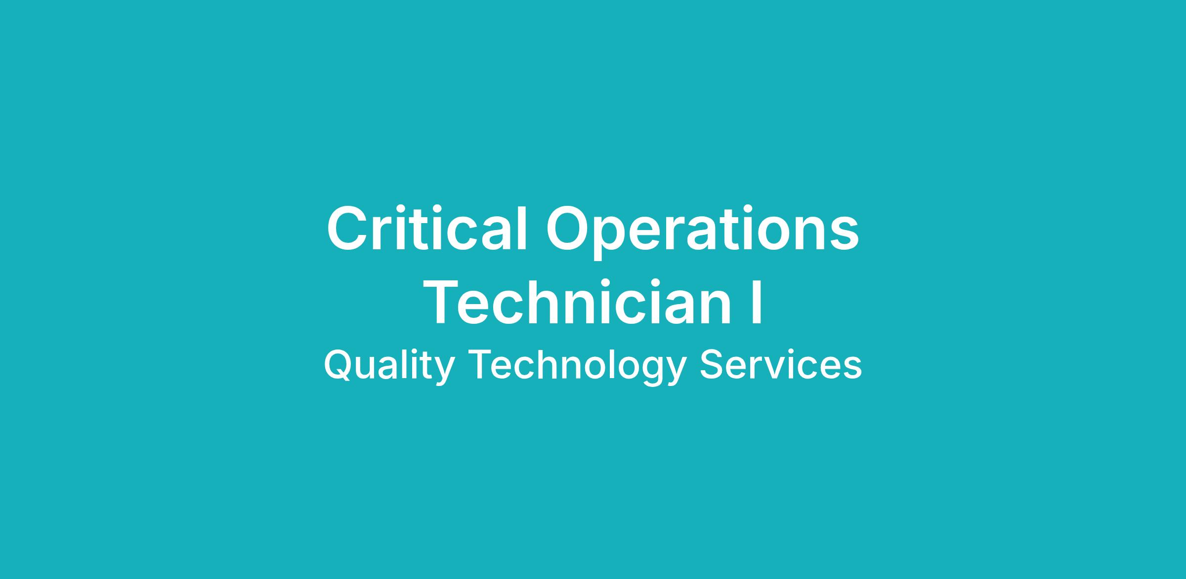 The Critical Operations Technician I is responsible for the installation, repair, and maintenance of IT, electrical, mechanical, plumbing/piping equipment, machinery and controls located in the interior and exterior of building. This role monitors operations and conducts a routine and ongoing assessment of the building systems, operations, and performance. This role performs tests, rounds and analyzes data to ensure the proper functioning of departmental equipment. The role is also responsible for assisting customers on the Data Center floor both in person and via the telephone, performing customer equipment installs, managing tickets within the ticketing system, communicating and escalating alerts and customer requests to systems engineers for resolution, and completing tasks pertaining to computer hardware, software or operation systems. This role requires on-site work hours to support a 24X7X365 data center environment and is not eligible for remote and/or hybrid work.