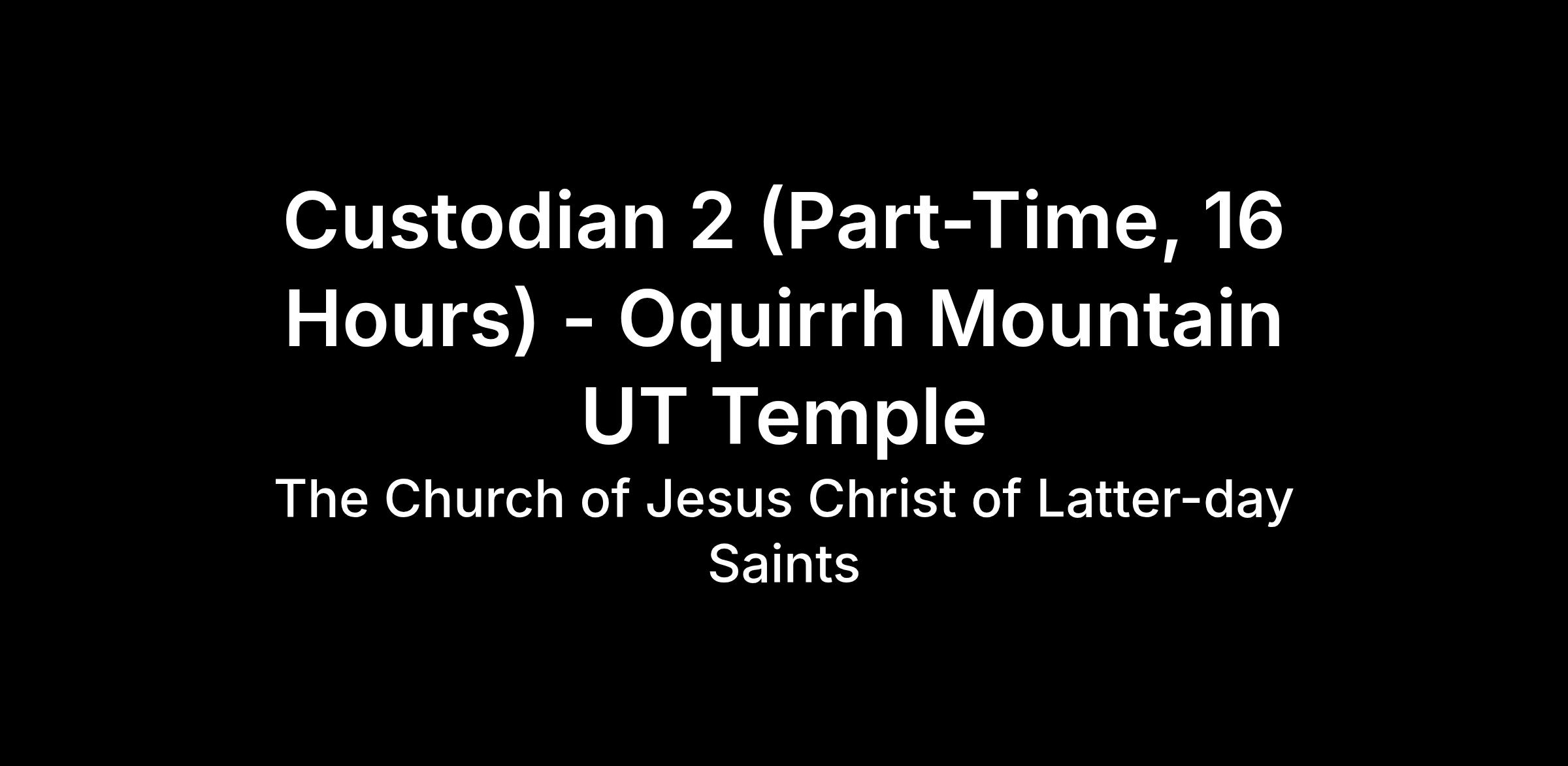 DescriptionThe purpose of this position is to "seek to bring forth and establish the cause of Zion."