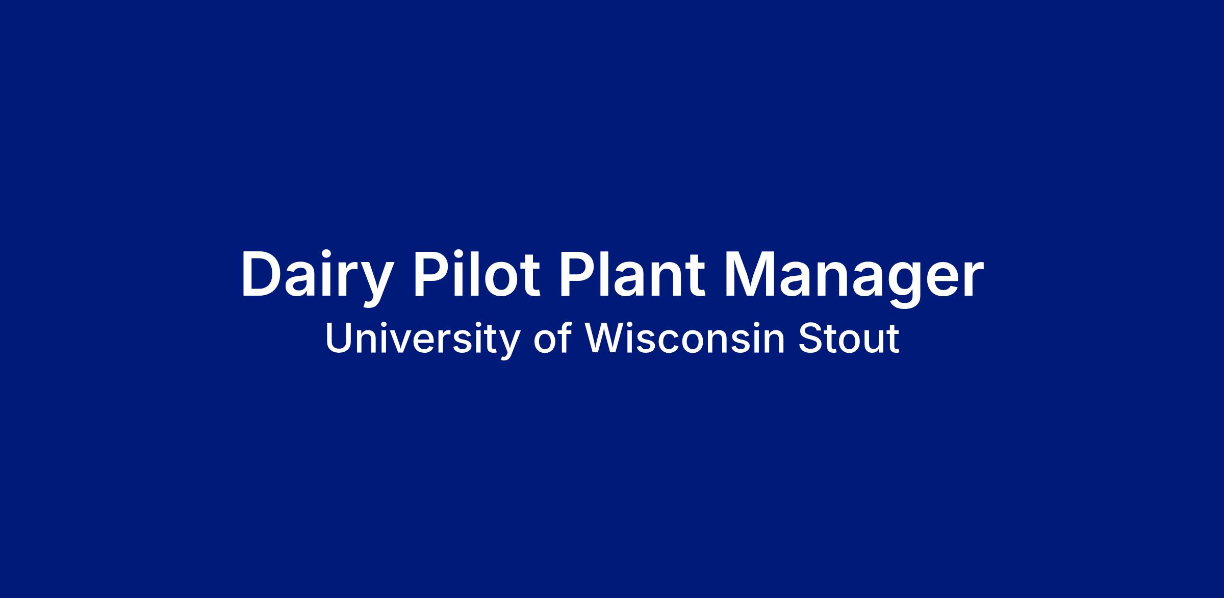 Dairy Pilot Plant Manager for the UWRF Dairy Plant and Freddy’s Dairy Bar in the Department of Animal and Food Science, College of Agriculture, Food and Environmental Sciences. This is a 12-month Academic Staff appointment.