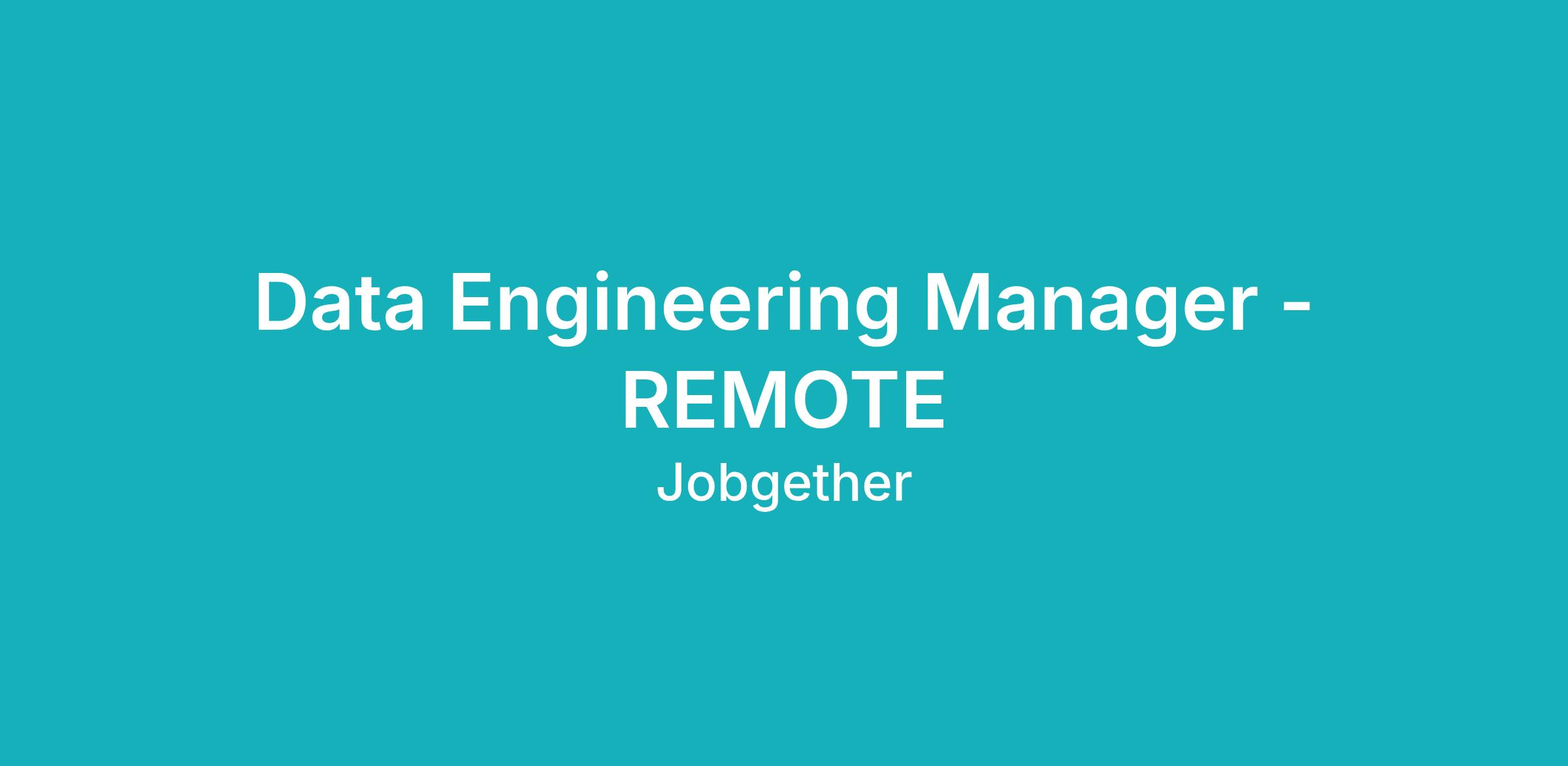 Data Engineering Manager - REMOTE