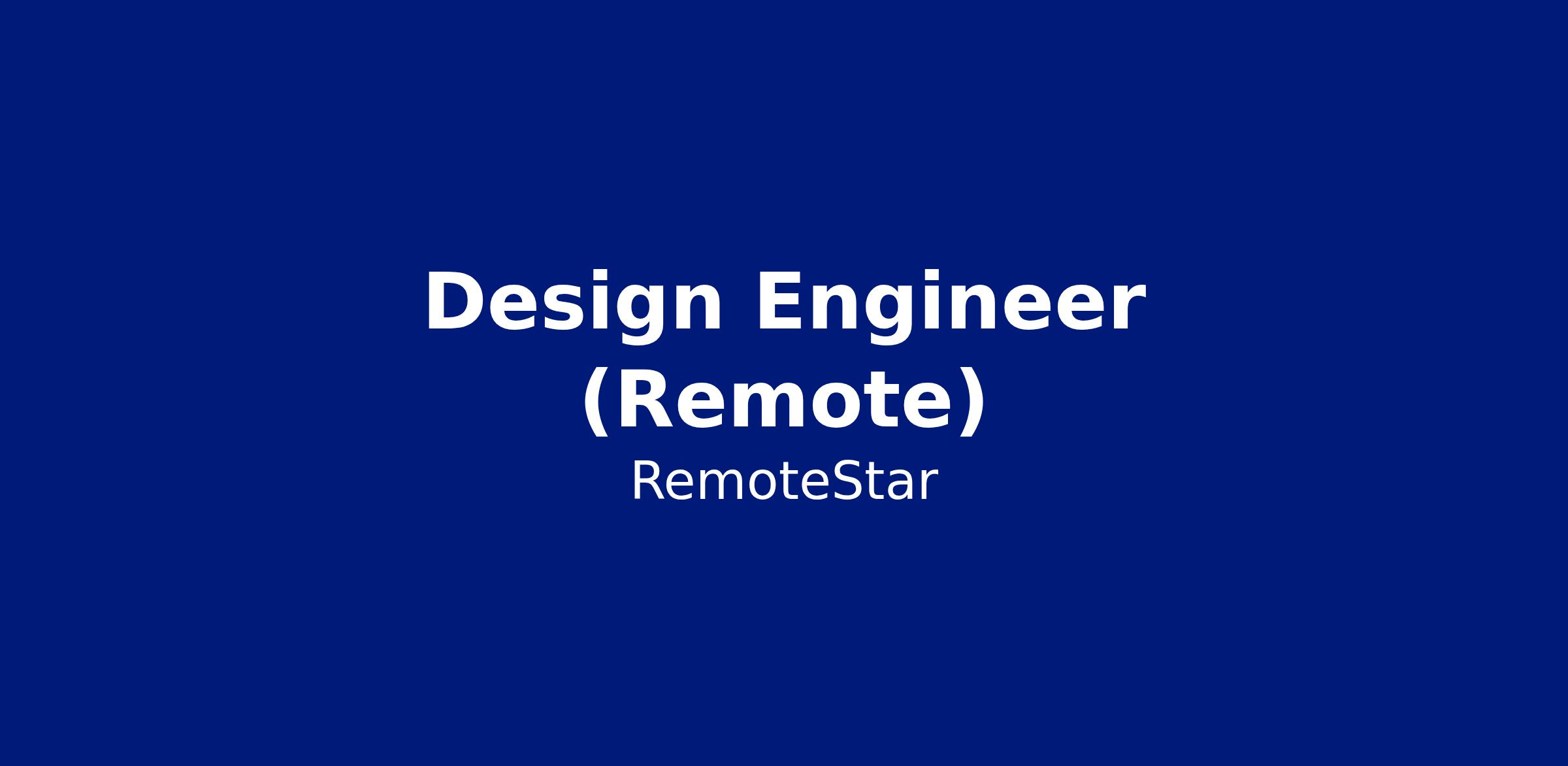 RemoteStar is looking to hire a Design Engineer on behalf of our client in the Scotland.