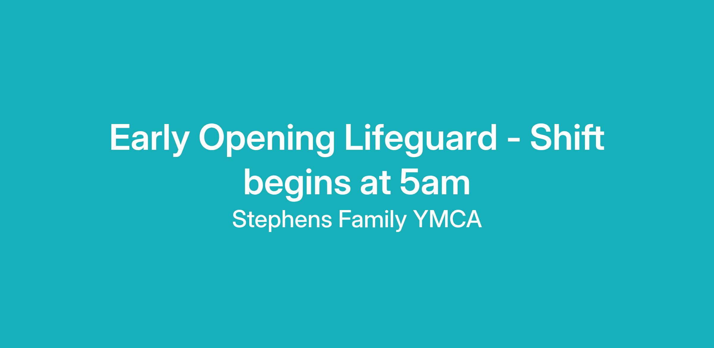 This position supports the work of the YMCA, a leading nonprofit, charitable organization committed to strengthening community through youth development, health living and social responsibility. The Early Opening Lifeguard at the Stephens Family YMCA consistently works the 5am-7am or 5am-8am shift and creates a safe and positive atmosphere that welcomes and respects all individuals while promoting and maintaining safe swimming conditions in the pool, deck and surrounding areas in accordance with YMCA policies and procedures.