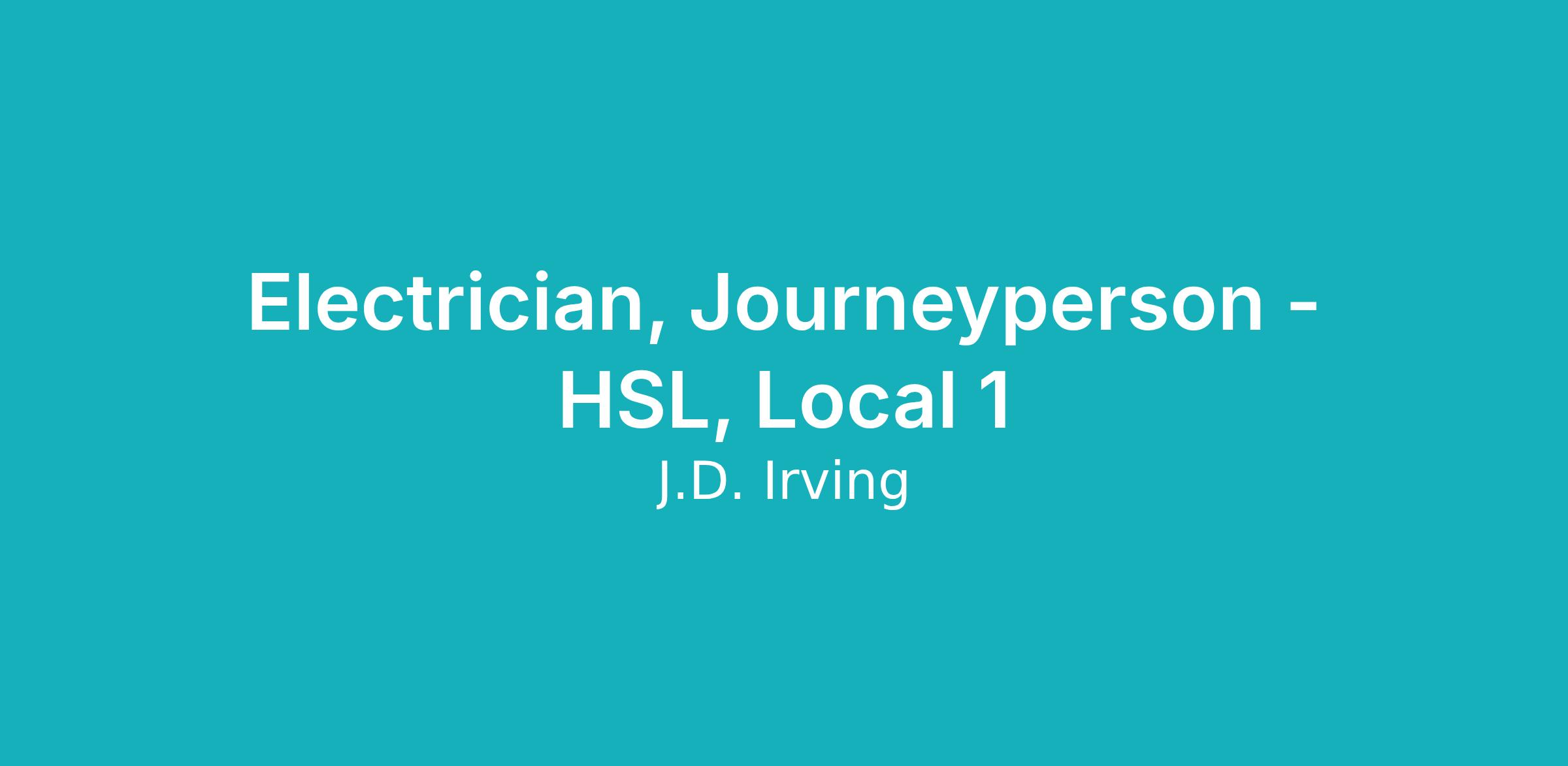 Irving Shipbuilding is seeking an Electrician, Journeyperson - HSL, Local 1 in Halifax, NS.