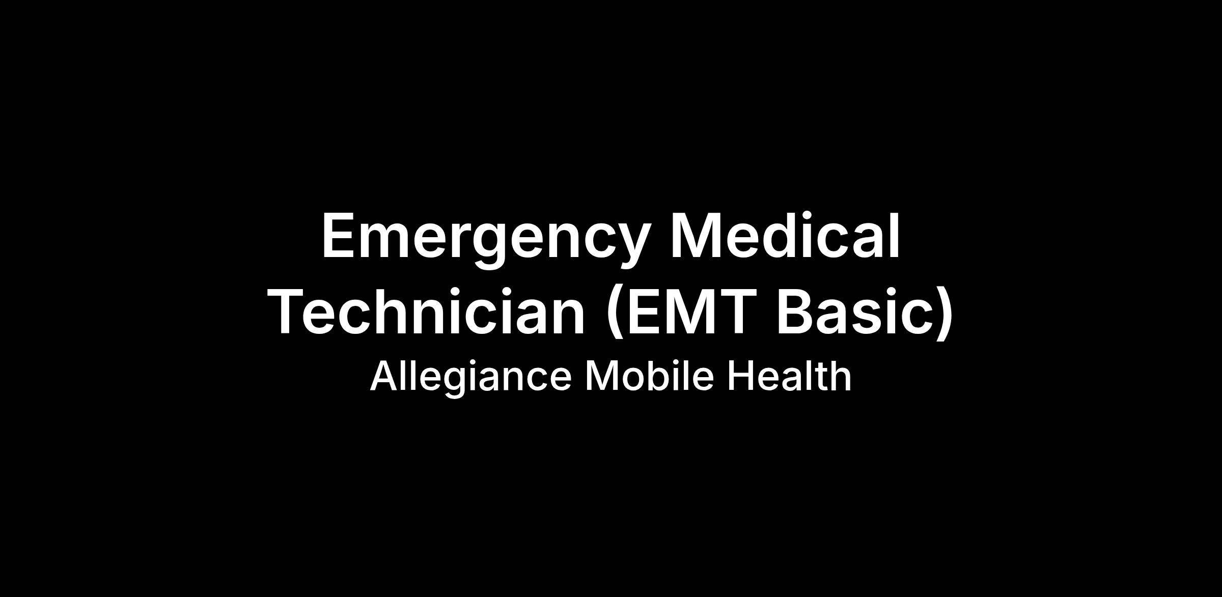 Allegiance Mobile Health of West Houston, TX is looking to hire Emergency Medical Technicians (EMT-B).