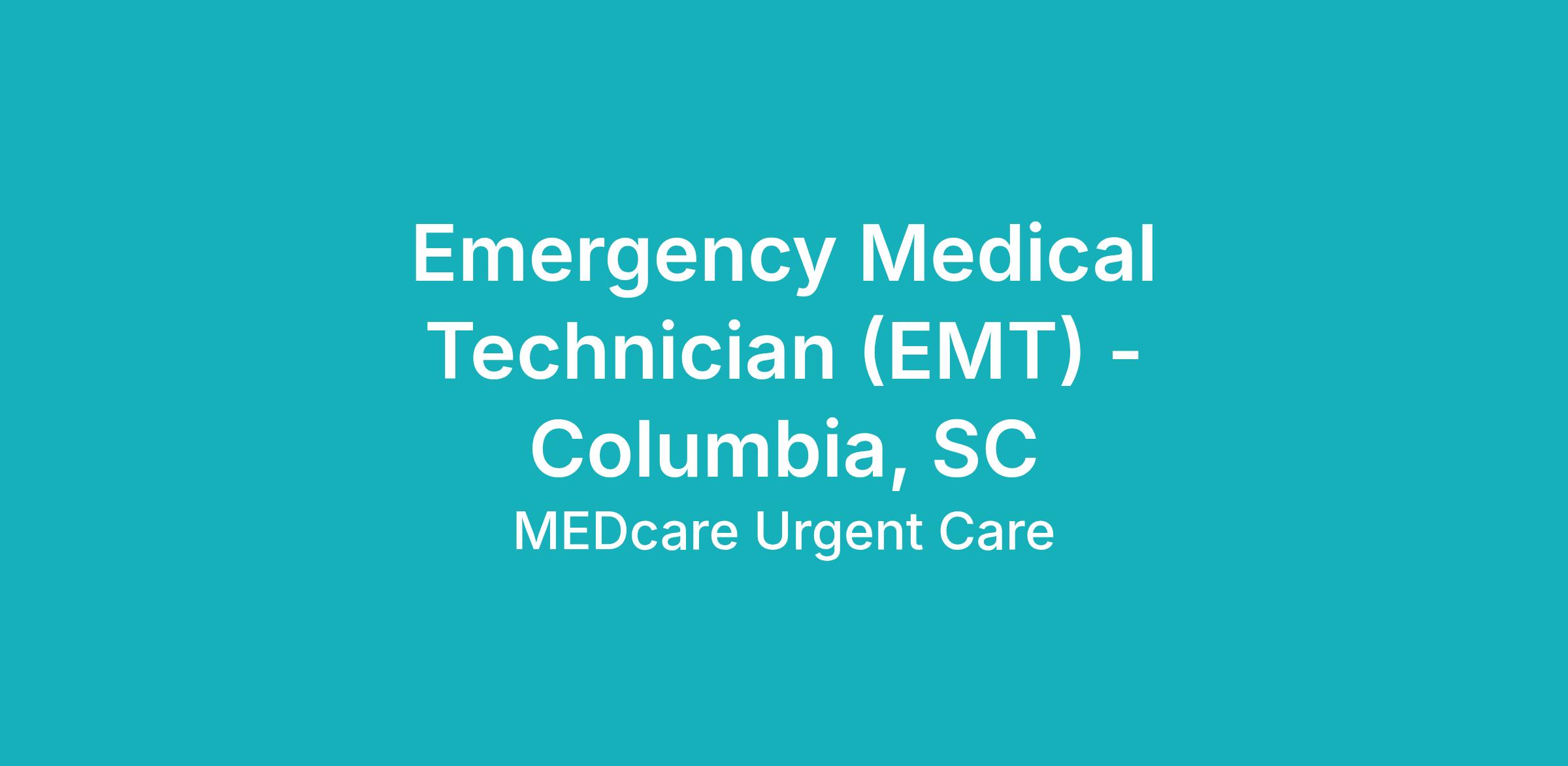 MEDcare Urgent Care has been proudly providing top-ranked patient care to South Carolina communities since 2007. Emergency Medical Technicians (EMTs) are critical to the success of our clinical teams and crucial to providing fast, friendly, and affordable healthcare at our 12 MEDcare Urgent Care centers. With onsite digital X-ray, EKG, common laboratory assays, our teams are able to offer a high level of care to our patients.