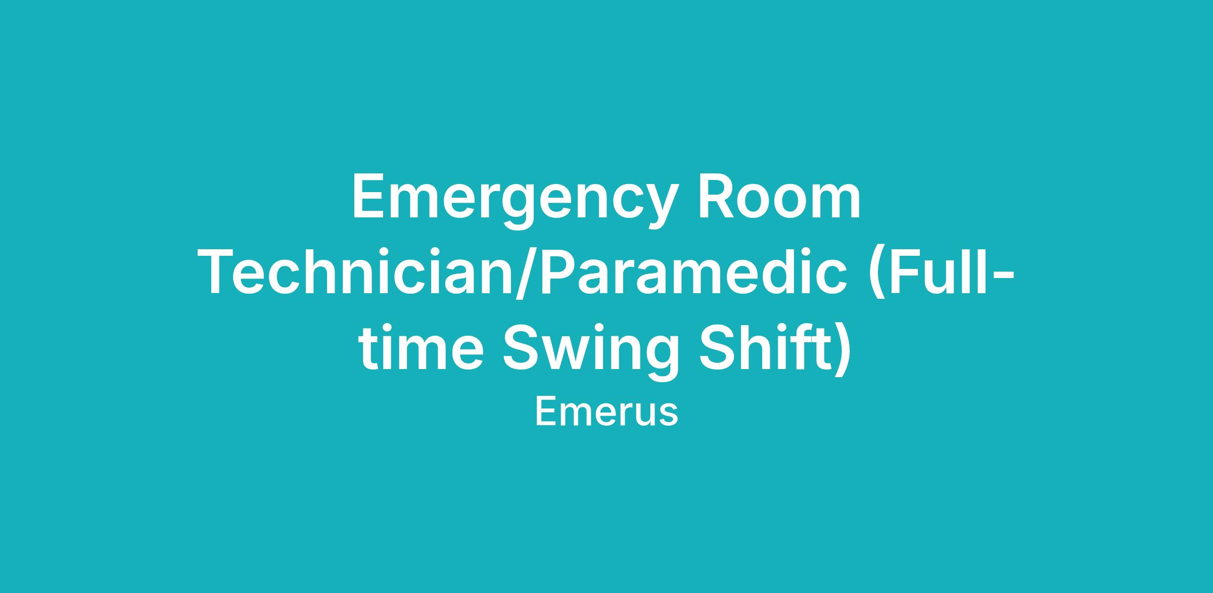 Emergency Room Technician/Paramedic (Full-time Swing Shift)