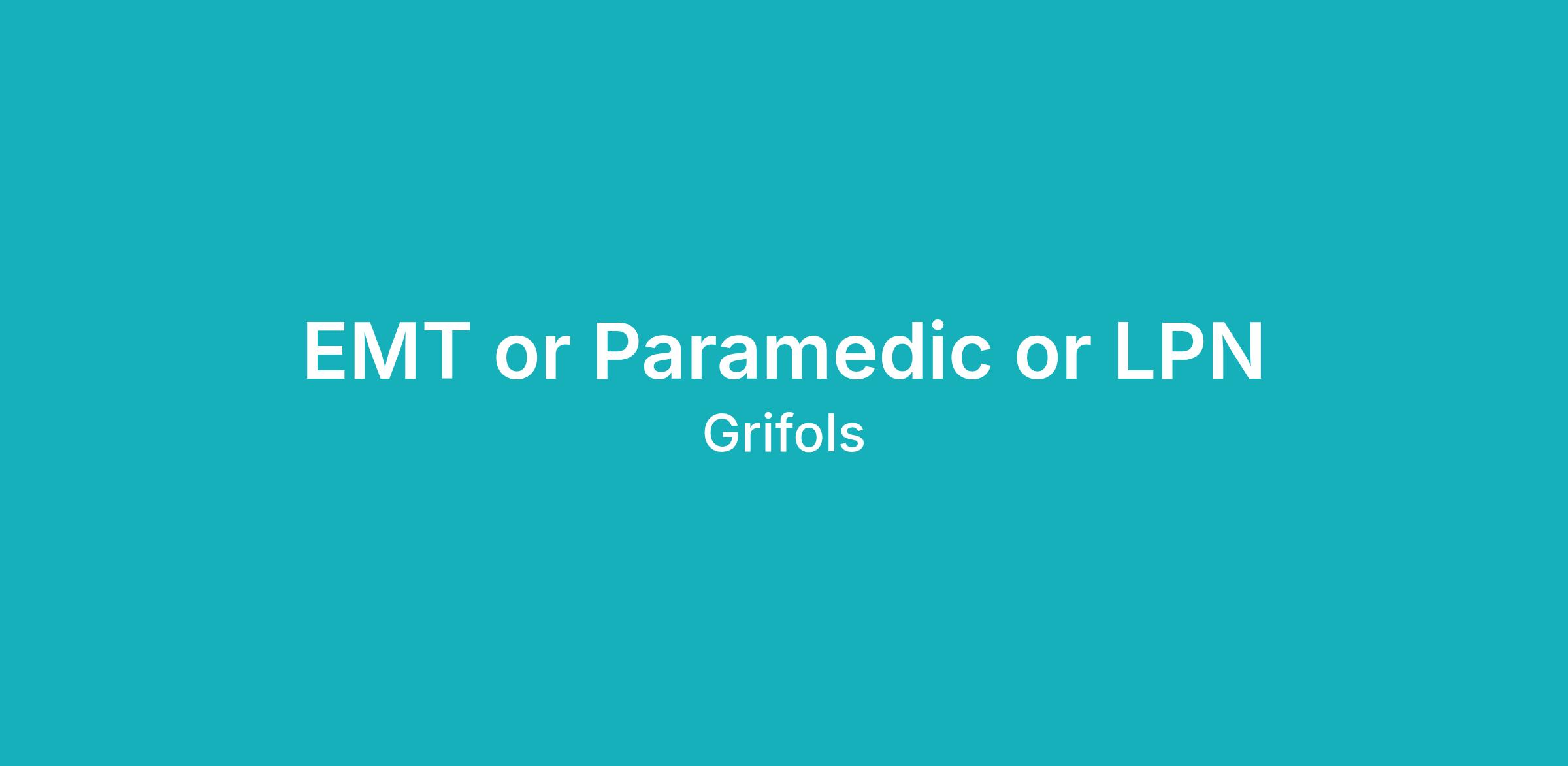 Seeking EMT Basic, Advanced EMT, Paramedic, LPN, or LVN for Plasma Donation Center!