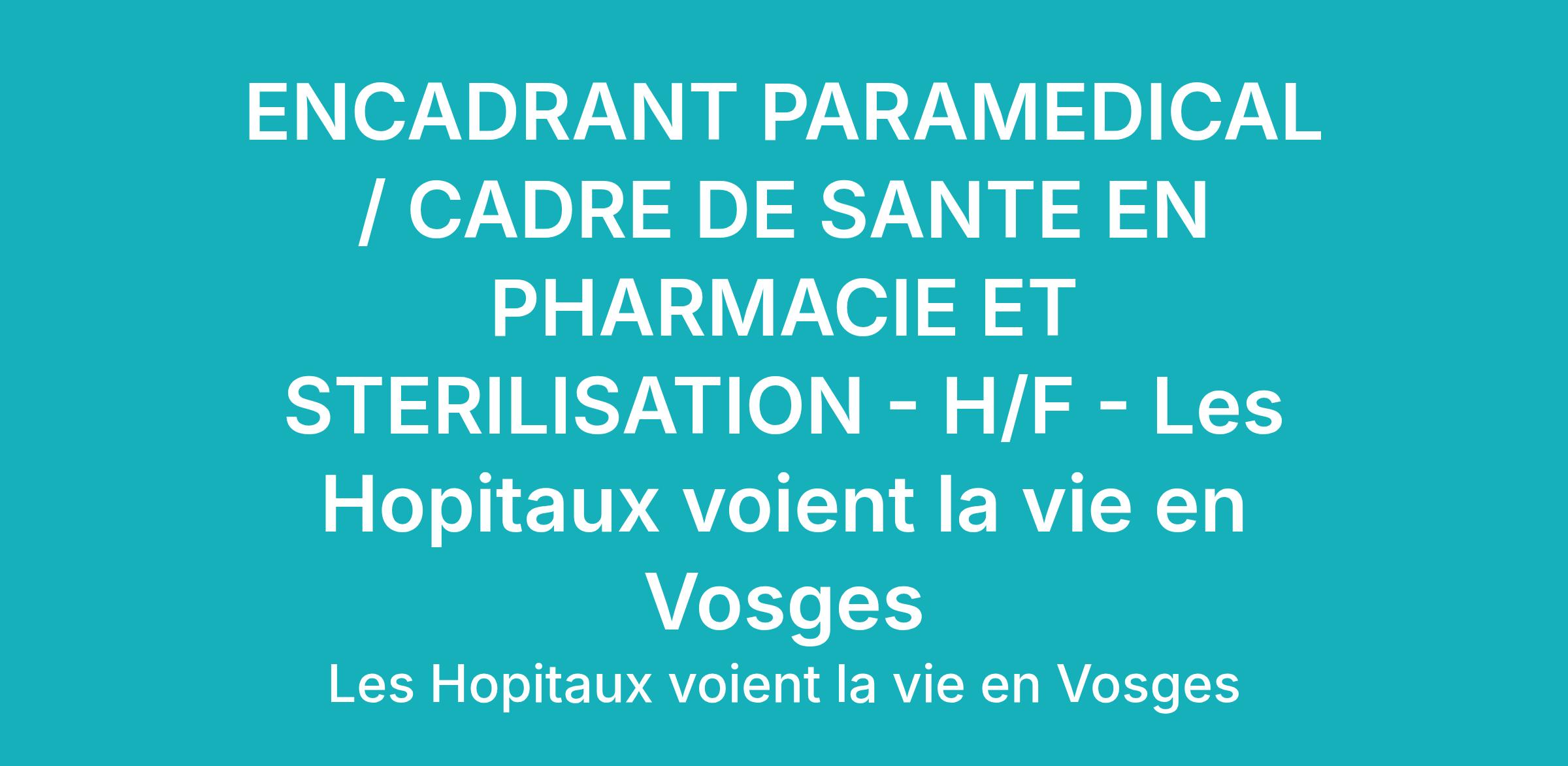 Nos services de PHARMACIE A USAGE INTERNE et STERILISATION recherchent leur encadrant :