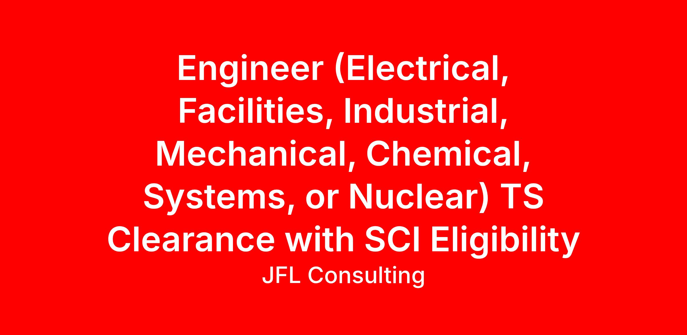 JFL Consulting, LLC is seeking a full-time Engineer with a strong background in electrical, facilities, industrial, mechanical, chemical, systems or nuclear engineering to join our highly specialized team. Must have the ability to thrive in a fast-paced environment and diligently complete mission objectives.