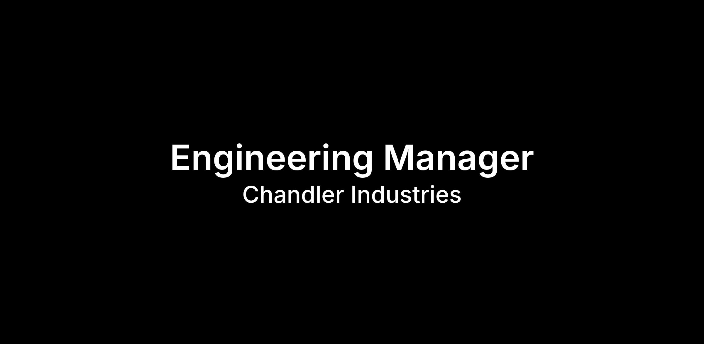 Chandler Industries is growing - and we’re looking for a hands-on Engineering Manager to help lead the next phase of our manufacturing innovation.