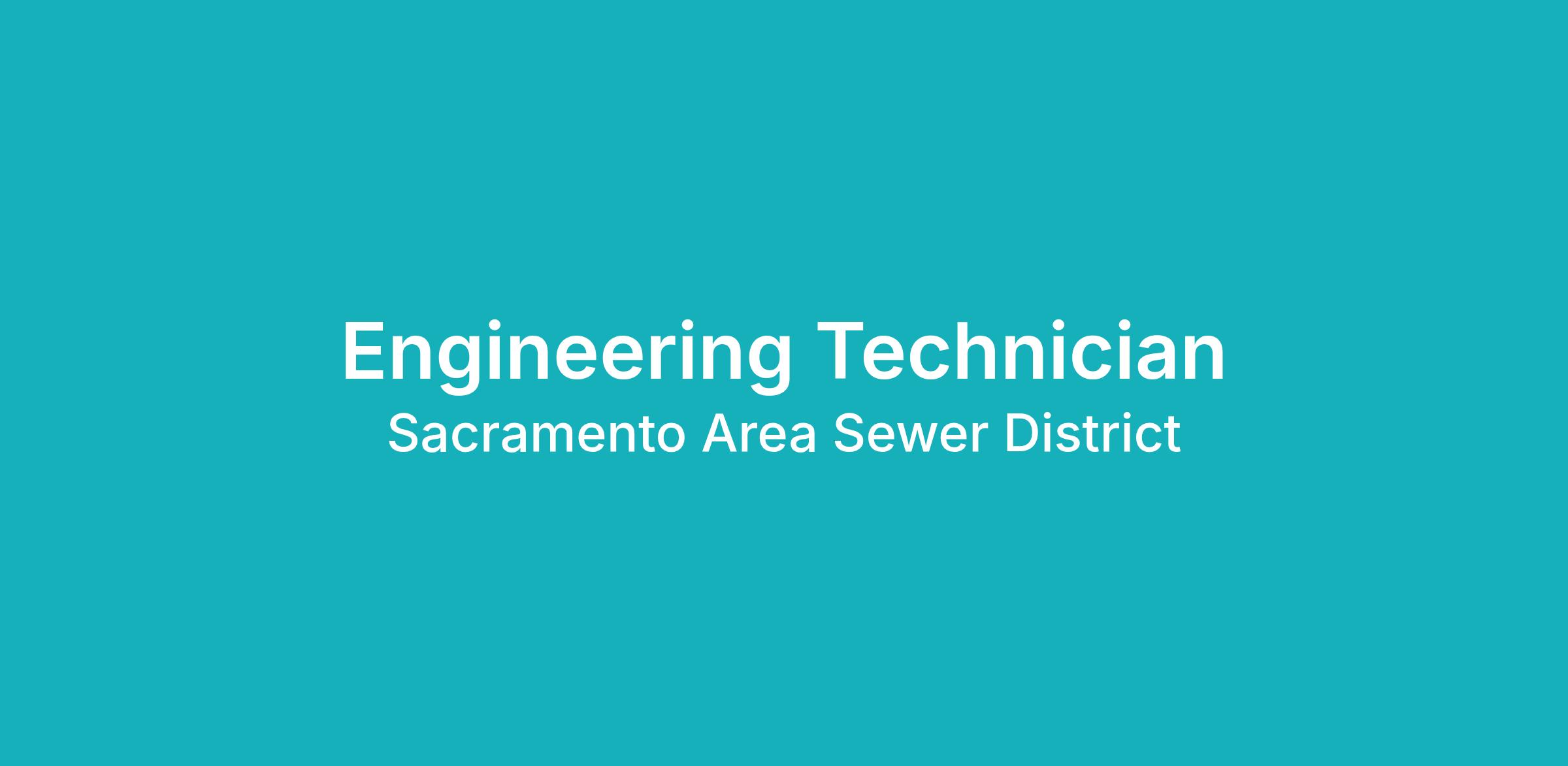 Sacramento Area Sewer District (SacSewer) is currently accepting applications for a Engineering Technician position. Applications will be screened after the following filing deadlines at 5PM: