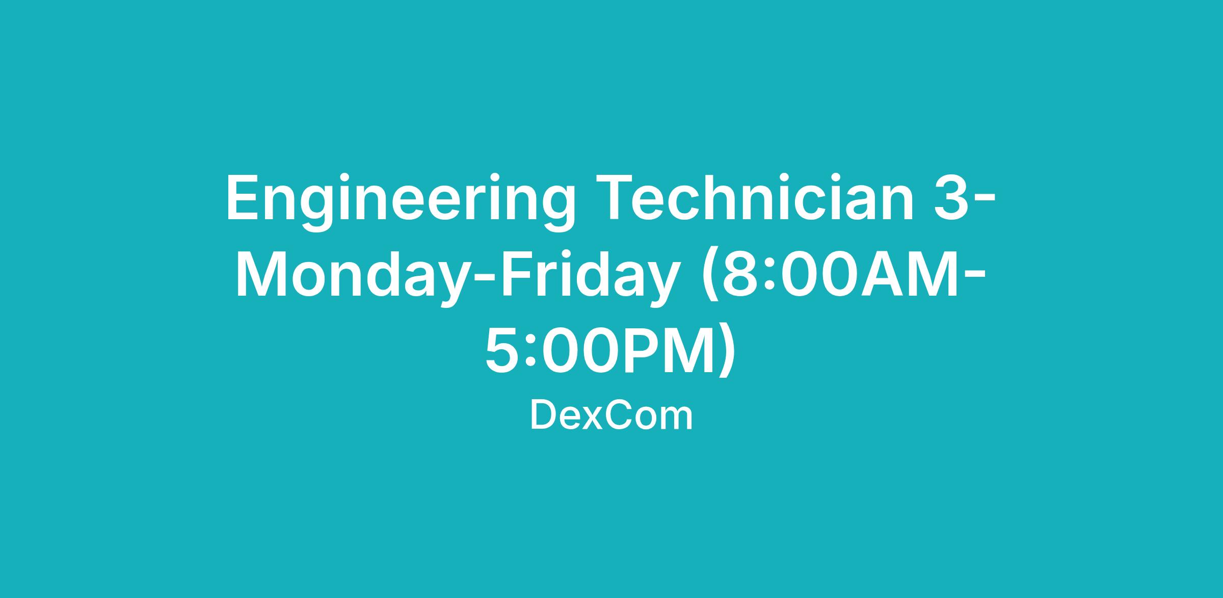 The Membrane Test Team in the R&D Advanced Electrochemistry and Sensor Department at Dexcom is a dynamic group of engineers and technicians focused on assessment of sensor functional performance for new sensor membrane materials and designs. The Engineering Technician 3 position is a crucial role in performing bench tests on new sensors to support the evaluation of reliability and accuracy improvements to the glucose sensor architecture. This role in the laboratory will provide a first-hand experience with characterizing sensor performance in the development of the company's next generation glucose sensor.