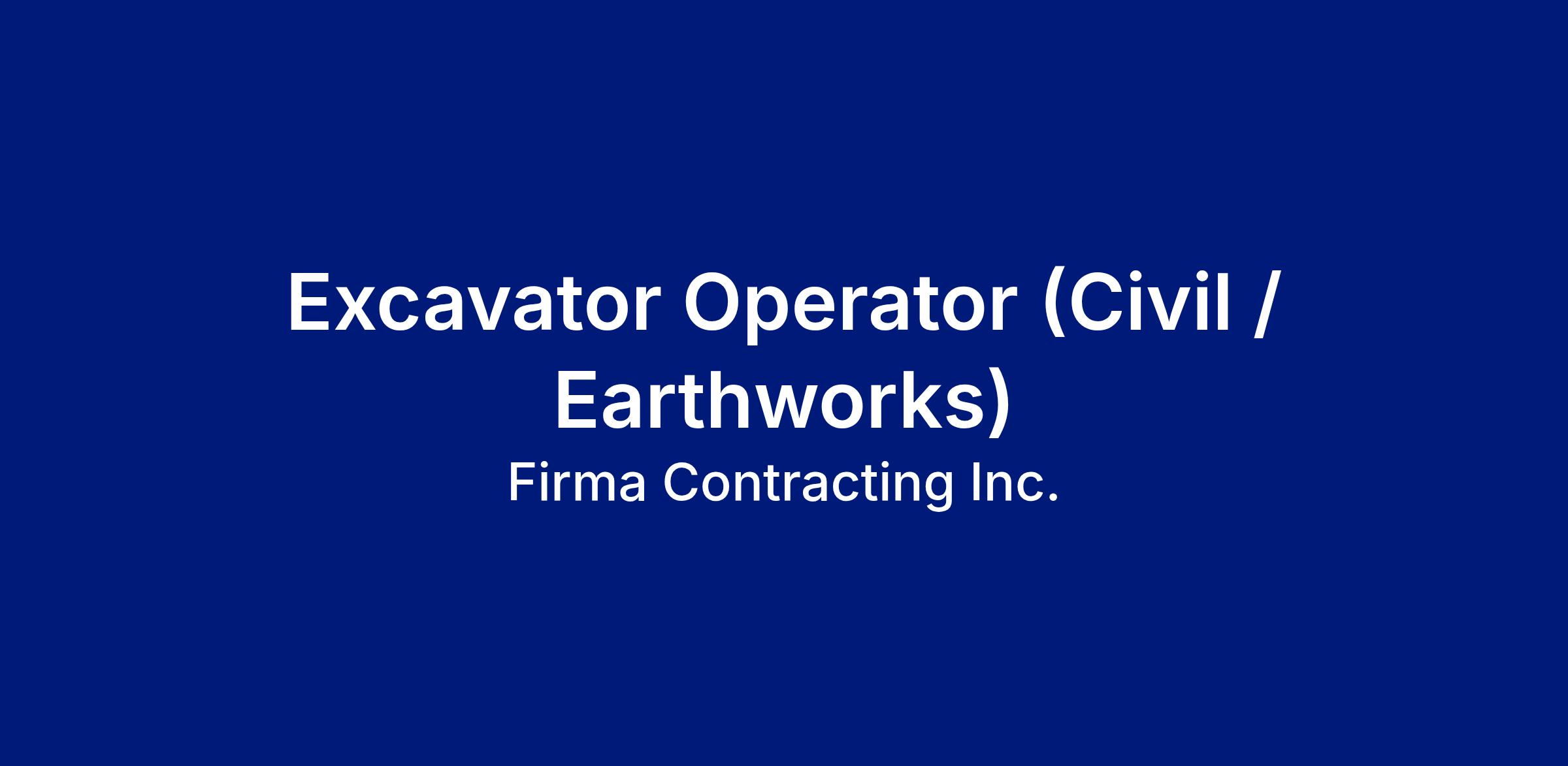Firma Contracting is currently seeking an experienced excavator operator for civil / earthworks projects located in Edmonton and area. We offer competitive wages, work / life balance, great opportunity for advancement, potential for winter work and company matching RRSP program.