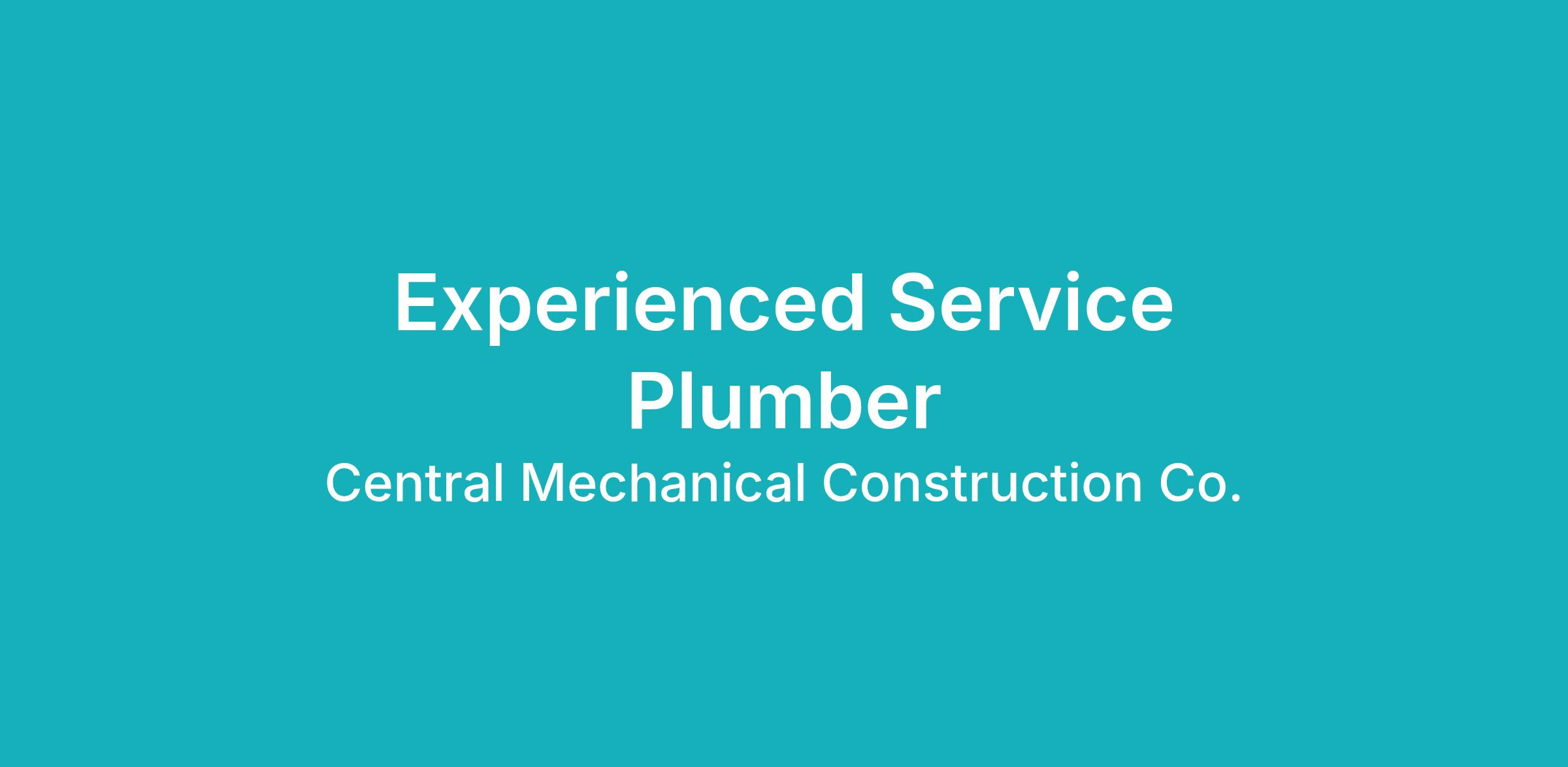 Central Mechanical Construction is seeking an experienced, full‑time Service Plumber to perform preventative, corrective, and emergency maintenance, troubleshooting, and repair of commercial and industrial plumbing systems. The ideal candidate is well organized, maintains accurate service records, communicates effectively, and delivers excellent customer service. This role requires strong technical ability, professionalism, and leadership. As a 24/7 service organization, occasional work beyond 40 hours per week may be required.