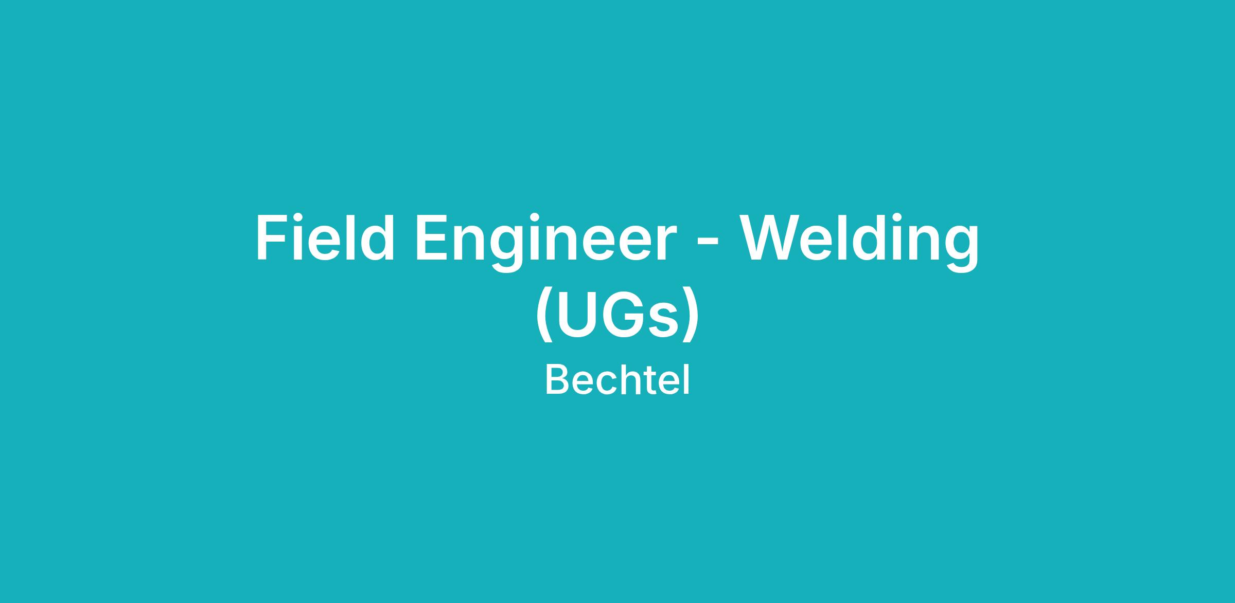 - Field Welding Engineer Coordinates work activities for Project Field Engineer and the Lead Field Welding engineer in implementing the site welding program on medium projects Implements and maintains Bechtel Field Welding program for all welding operations.