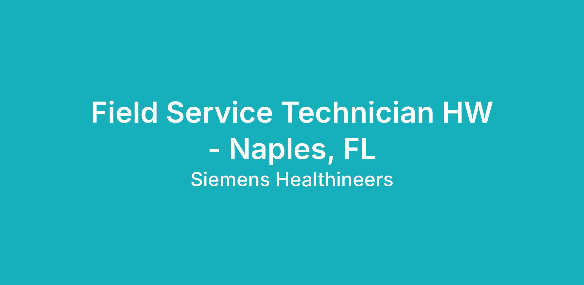 Note: Candidate must live within close proximity or be willing to relocate to Naples. This is a field based "remote" position that requires onsite work at several local customer locations.