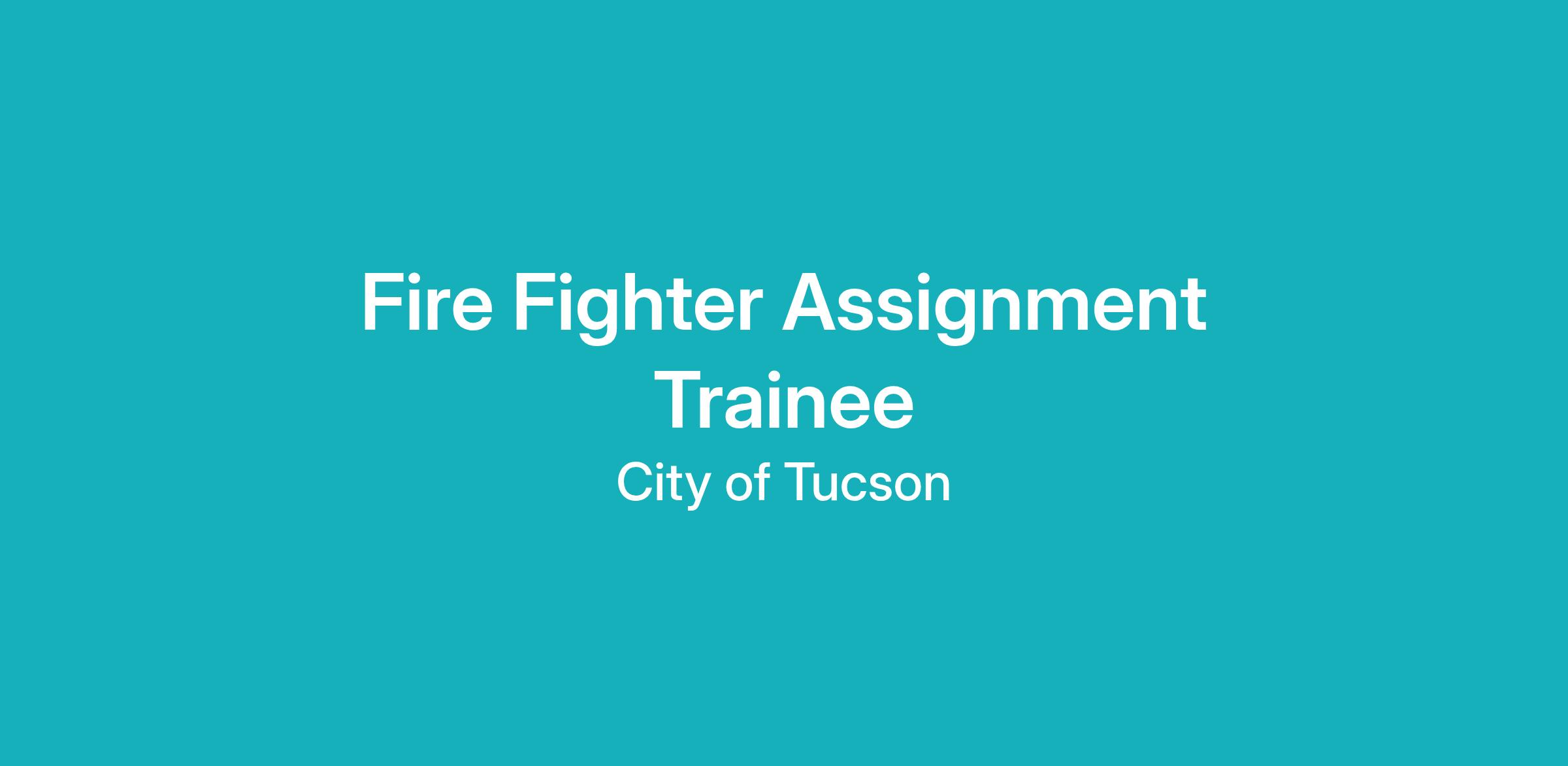 J6400 - Fire Fighter Assignment TraineeTo view the full job profile including classification specifications and physical demands click https://www.tucsonaz.gov/Departments/Human-Resources/Tucson-Talent.