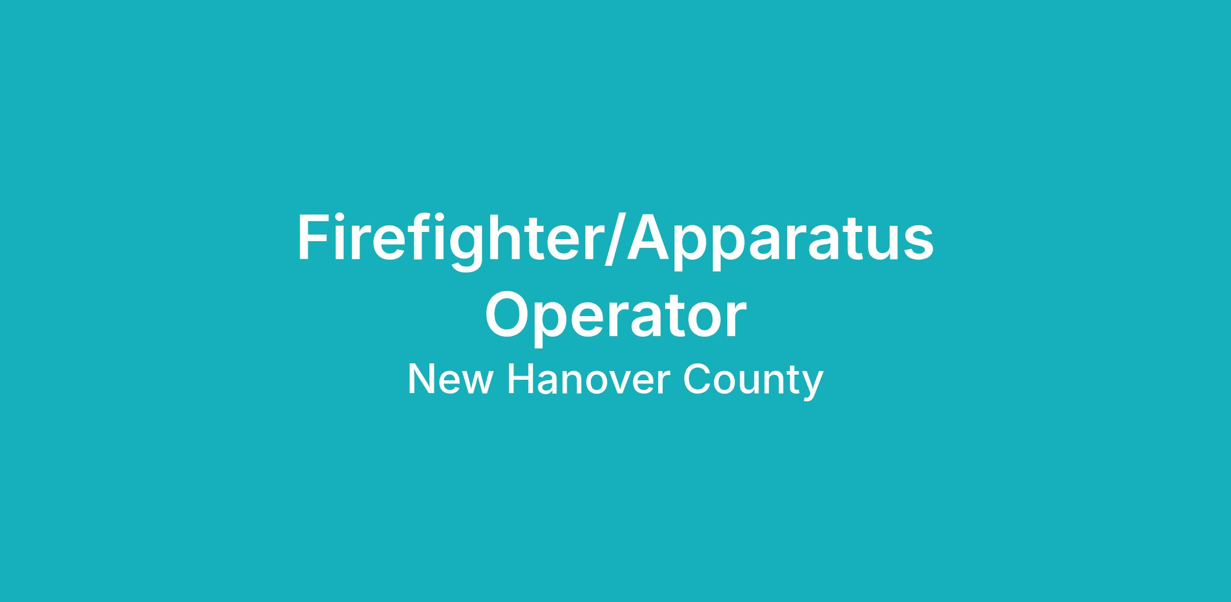New Hanover County is accepting applications for full-time Firefighter/Apparatus Operators, where selected applicants meeting the requirements for and successfully completing an assessment will be selected to fill current and/or future vacancies. Duties include protecting life and property by responding to emergencies; securing the scene; extinguishing the fire; salvaging structures and their contents; and providing basic emergency medical care as a first responder. Responds as the primary apparatus operator to reports of emergencies which includes fires, emergency medical requests, technical rescue incidents, hazardous materials response and other types of situations that may present hazards or harm to people or property. Other duties include performing maintenance of vehicles and fire stations, conducting pre-plan fire inspections, acting in the absence of the Company Officer on assigned shifts and representing Fire Services to the public at various events.