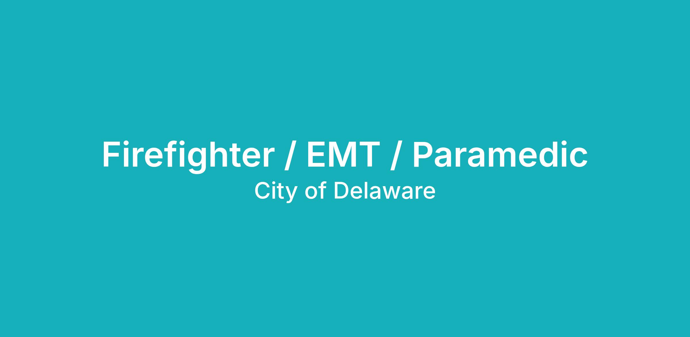 The City of Delaware is currently building an eligibility list to fill full-time Firefighter/EMT/Paramedic positions. The same hiring steps are required for lateral applicants.